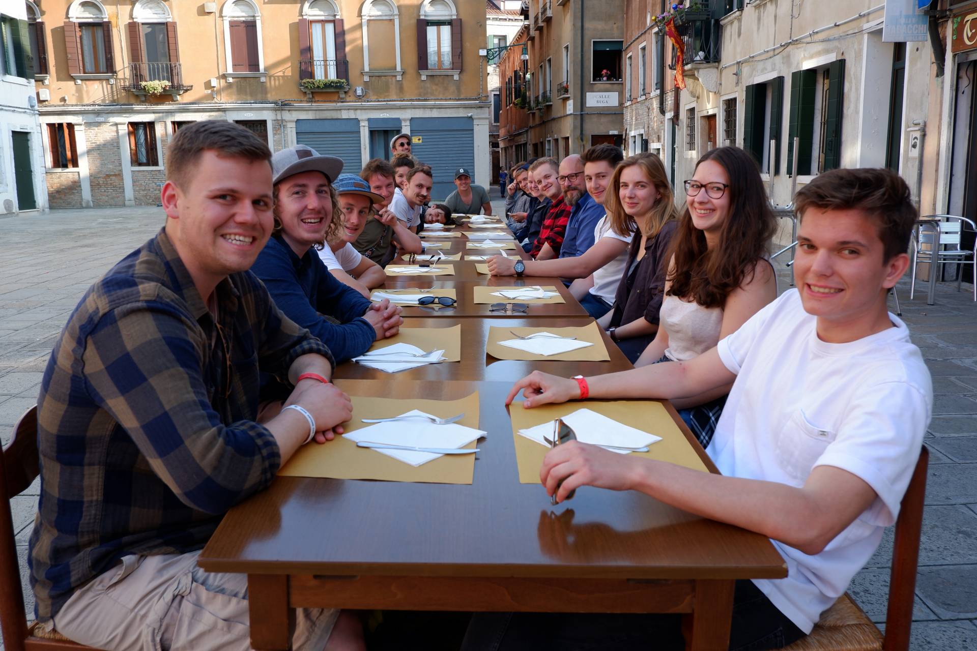In kleinen, abgelegenen Hinterhöfen konnten wir im Rahmen eines Zeichenworkshops das Skizzieren mit Ein- und Zweipunktperspektiven üben. Gleichzeitig wurde der Tag für eine etwas andere Stadtführung mit Einblick auf ein modern gebautes Venedig architektonisch genutzt. Beim letzten gemeinsamen Abendessen schauten wir im Restaurant des ersten Abends auf die schönen vorherigen Tage zurück.