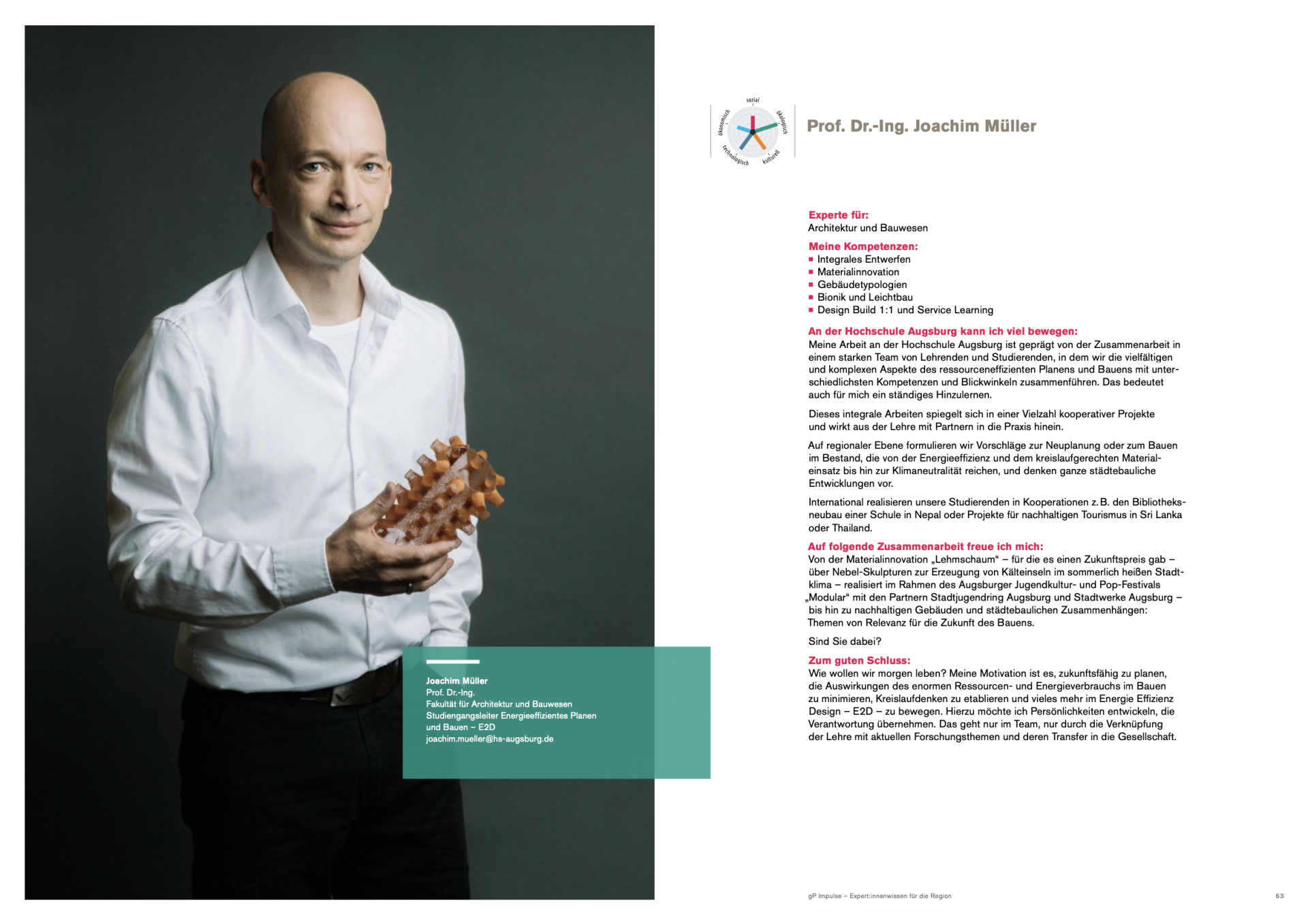 | 2017 - 2022 und seit 2025 | Studiengangsleiter und Fachstudienberater "Energieeffizientes Planen und Bauen - E2D" |