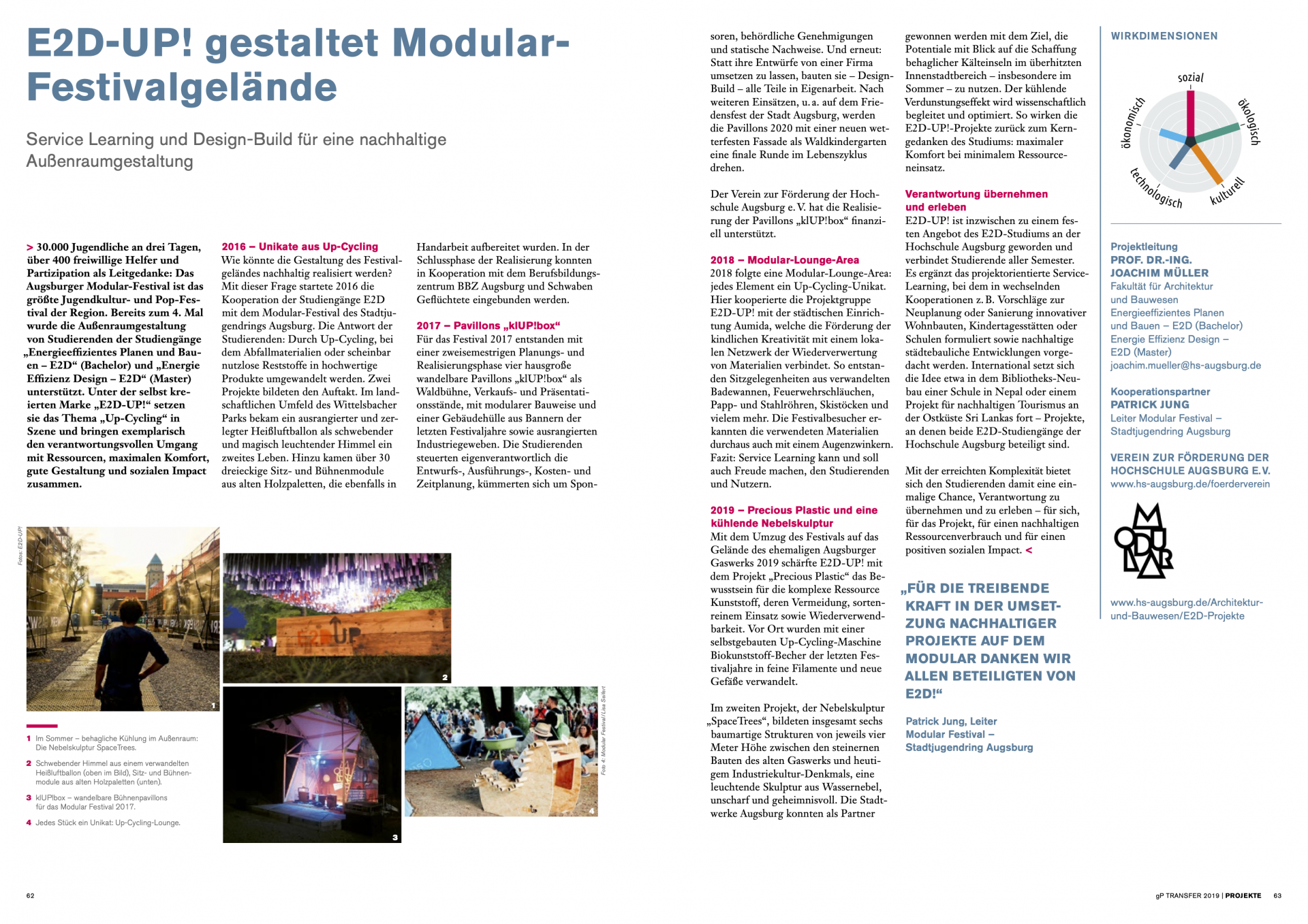 Einen Kurzvortrag mit dem Titel "Gemeinsam.Machen - Service Learning und Design Build im Studiengang E2D" von Joachim Müller im Rahmen des HSA Forums HSA_transfer | Forum: Social Impact" finden Sie > hier.