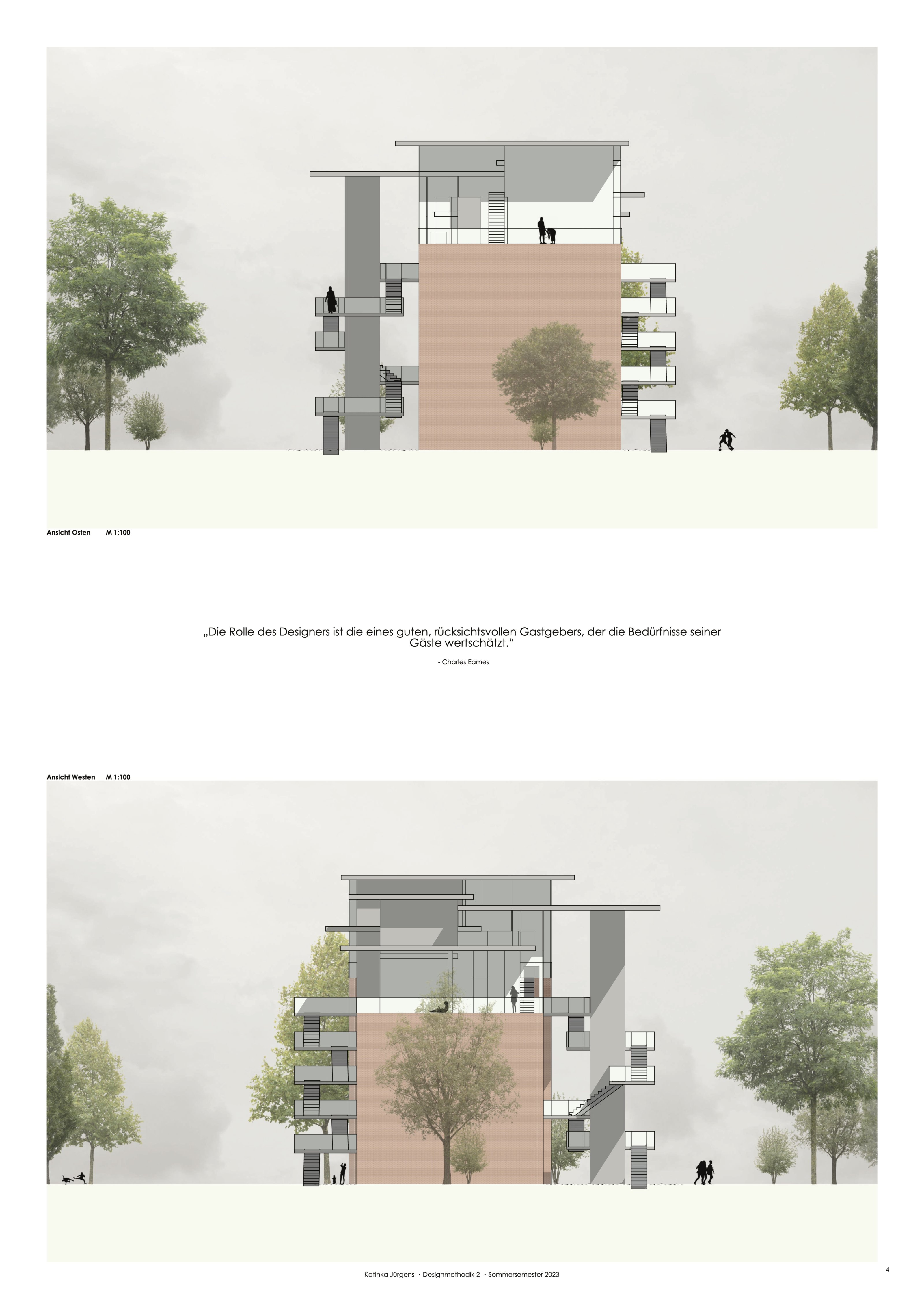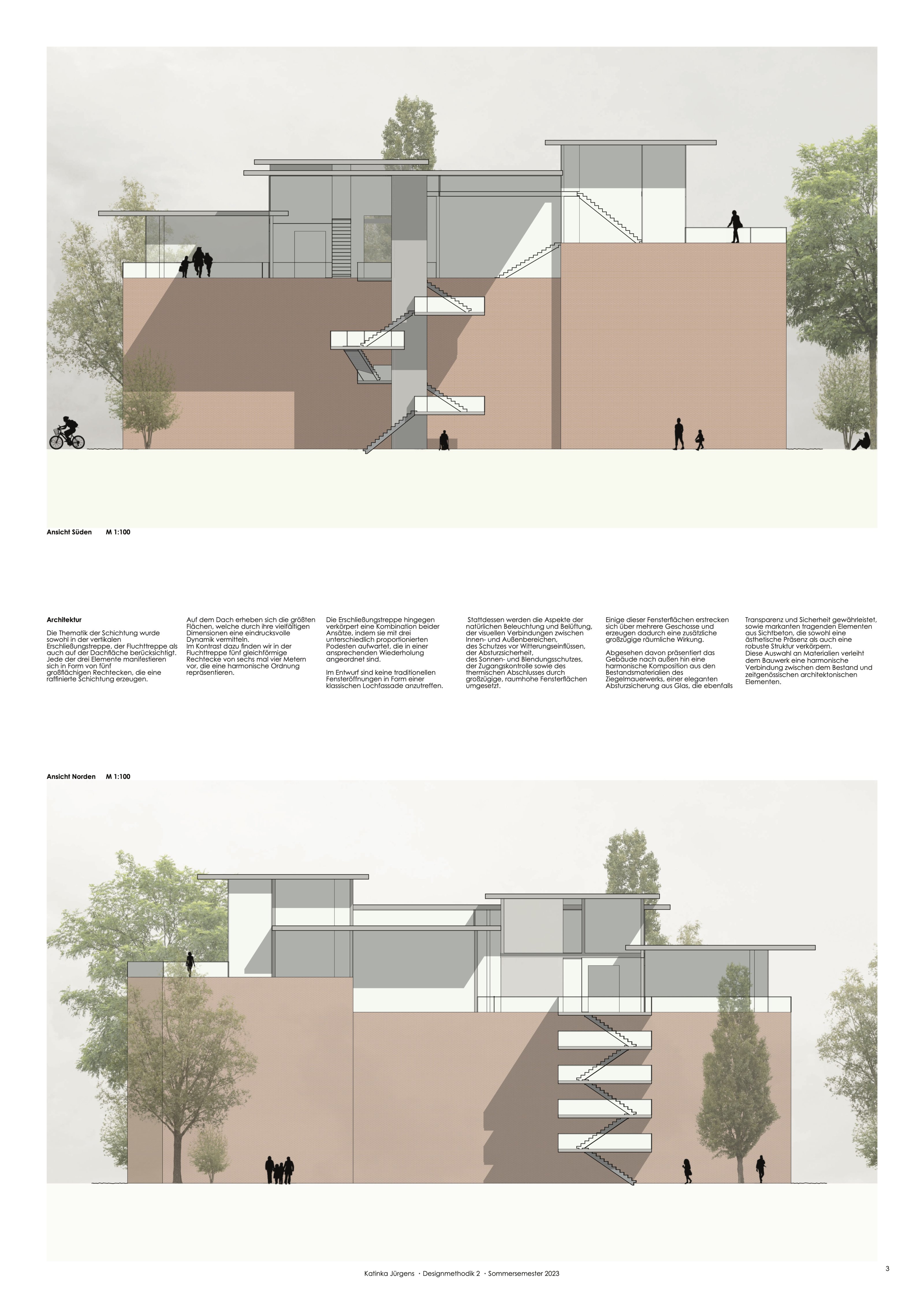 Im Modul "Designmethodik 2" kam nun neben dem klassischen Entwurf der digitale Workflow mit CAD, digitalen Bildbearbeitungen und Layout-Software hinzu. Gleichzeitig wurden Modellbautechniken und das Freihandzeichnen geübt.