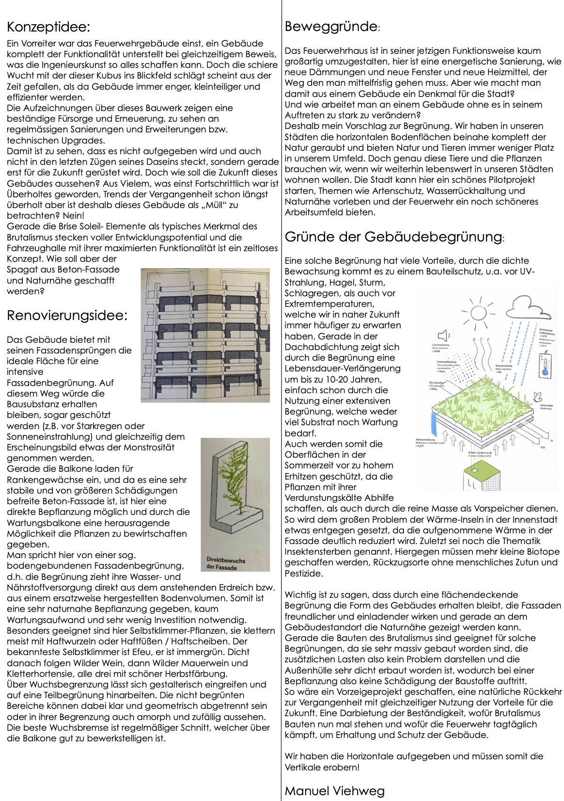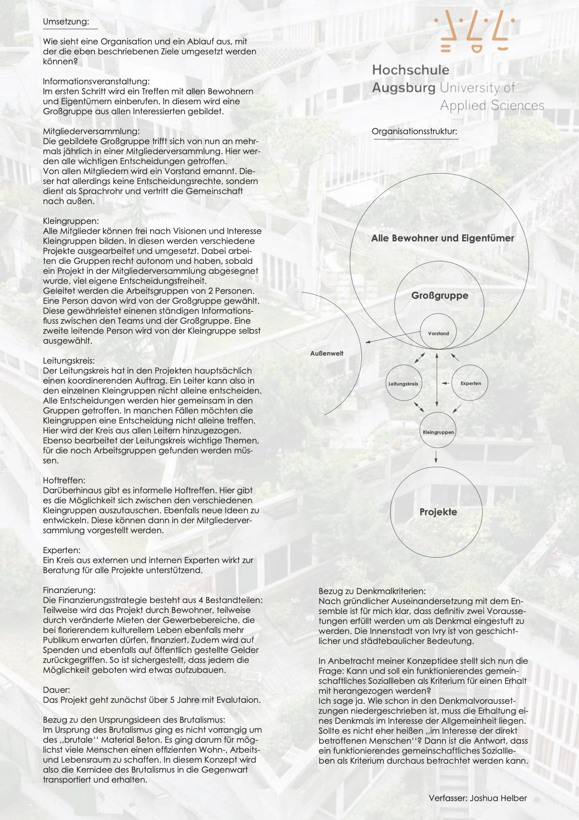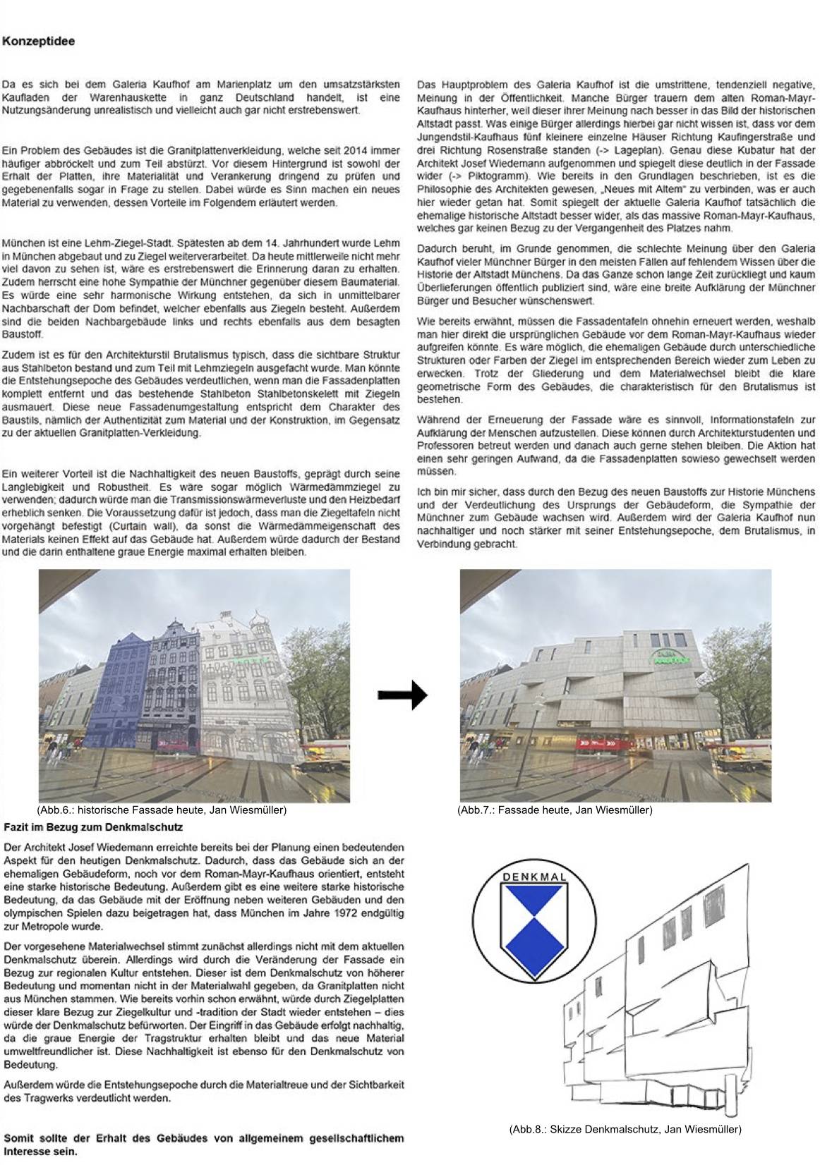 Abschließend kann ich sagen, dass mir das Seminar trotz des online Unterrichts sehr zugesagt hat. Ich habe auch durch die Gespräche mit dem Seminarleiter Oliver Heiss und meinen Mitstudierenden ein Thema gefunden, welches mich nicht nur interessiert, sondern auch zum Nachdenken gebracht hat. Ich wusste schon vorher, wie wichtig Bestandsgebäude sind, nicht nur für unser Klima, sondern auch für uns als Gesellschaft (Zeitzeugen etc.). Dennoch ist mir das große Potenzial der Architektur nochmals verdeutlicht worden. Architektur ist ein Tool, welches klug eingesetzt Unglaubliches bewirken kann. Architektur lässt Menschen einander begegnen, sie bringt ganze Gemeinschaften zusammen und schenkt uns Sicherheit.