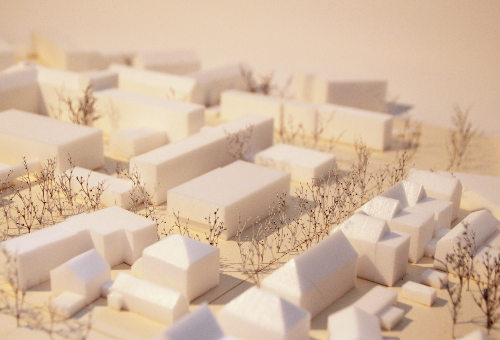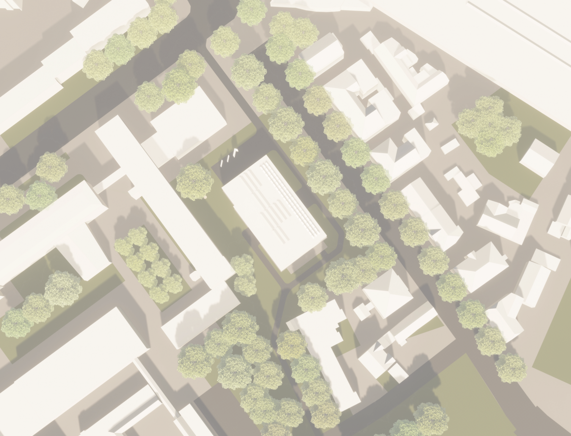 Das Innovationszentrum für nachhaltige Baustoffe Augsburg INaB-A fügt sich in die Struktur der Hochschulgebäude am Campus Brunnenlech entlang der Baumgartnerstraße ein. Das zentrale Element des Gebäudes bildet das Atrium. Es sorgt für natürliche Belichtung des Gebäudeinneren, dient als Ausstellungsfläche, beinhaltet eine vertikale Haupterschließungsfunktion, schafft visuelle Verbindungen der offenen Kommunikationsbereiche im Gebäude mit der Werkstatt (Blickbeziehungen) und ermöglicht in Verbindung mit den an der Fassade angebrachten Solarkaminen eine durchgehende natürliche Belüftung.
