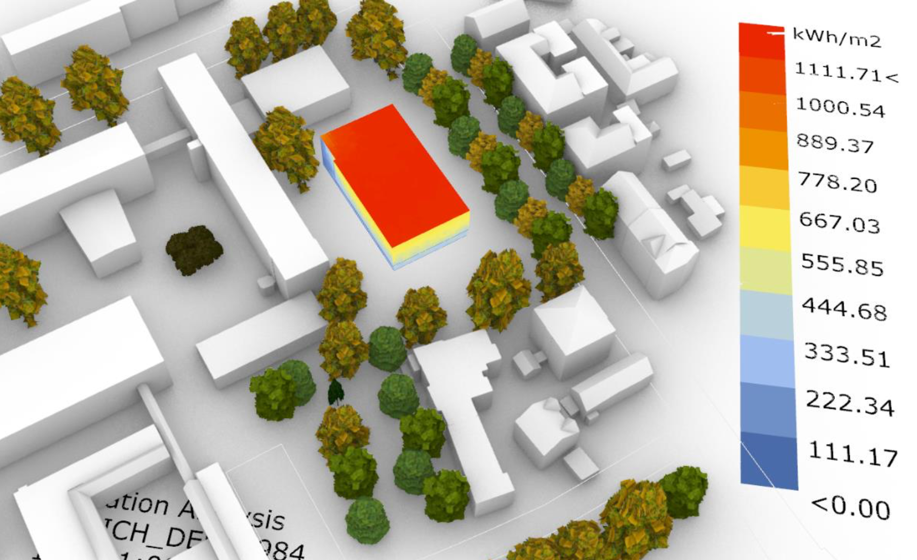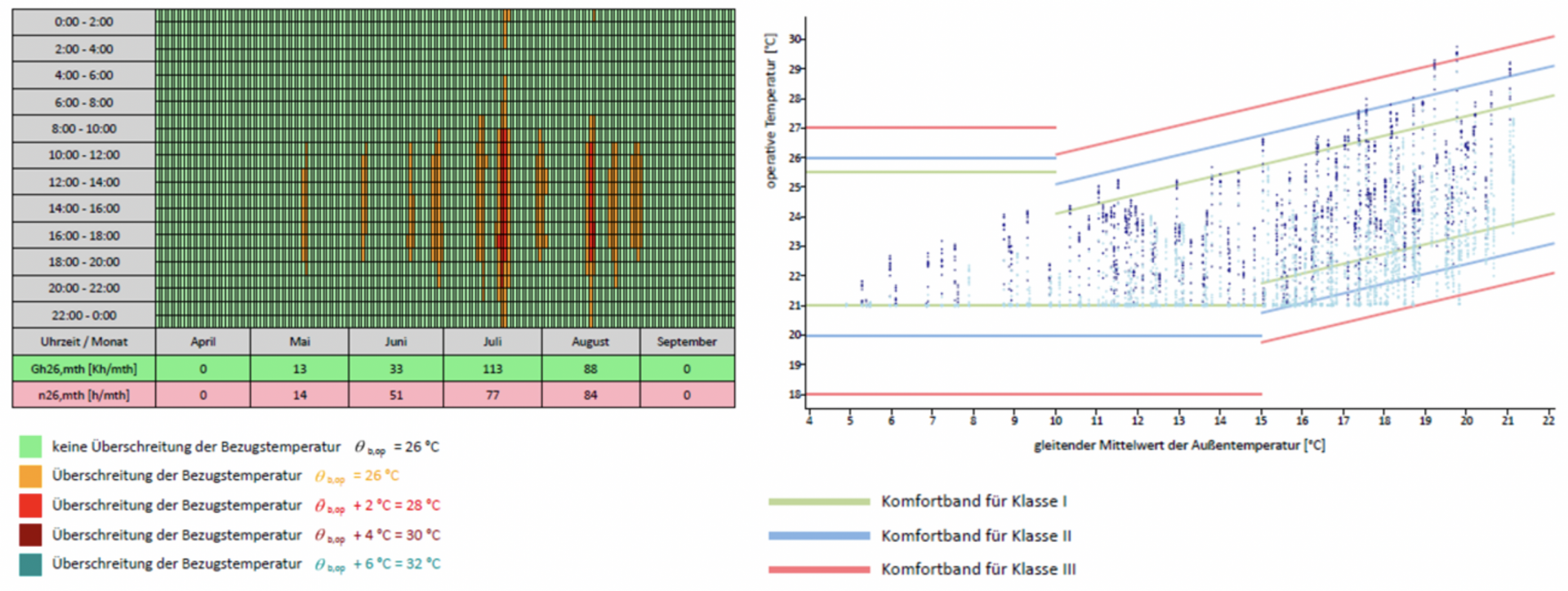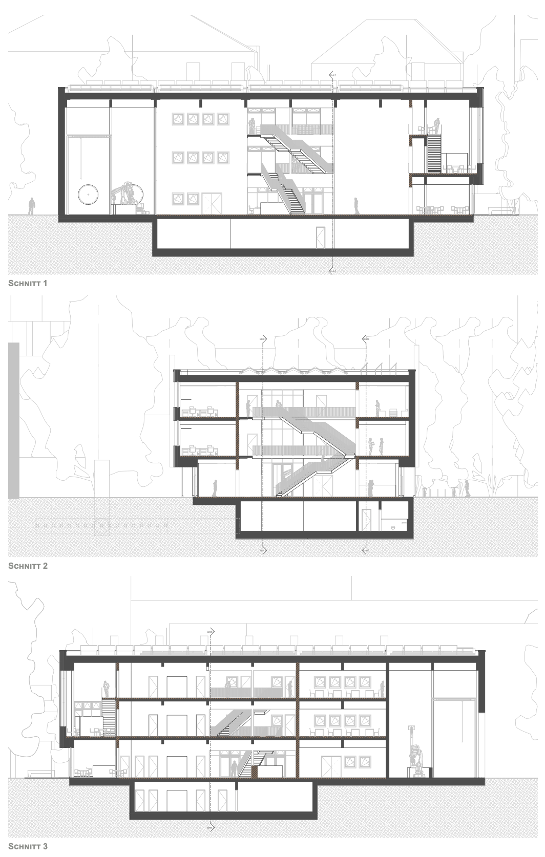 Durch den Textilen Sonnenschutz ist trotz Verschattung des Innenbereichs immer ein Bezug nach Außen sichergestellt, ohne die winterlichen (gewollten) solaren Energieeinträge zu reduzieren. Aus diesem Grund wurde bewusst auf eine feststehende Verschattung der Fassadenöffnungen verzichtet. Eine teilweise Verschattung der Fassadenöffnungen des Erdgeschosses wird durch eine Auskragung im südöstlichen und südwestlichen Teil ermöglicht.