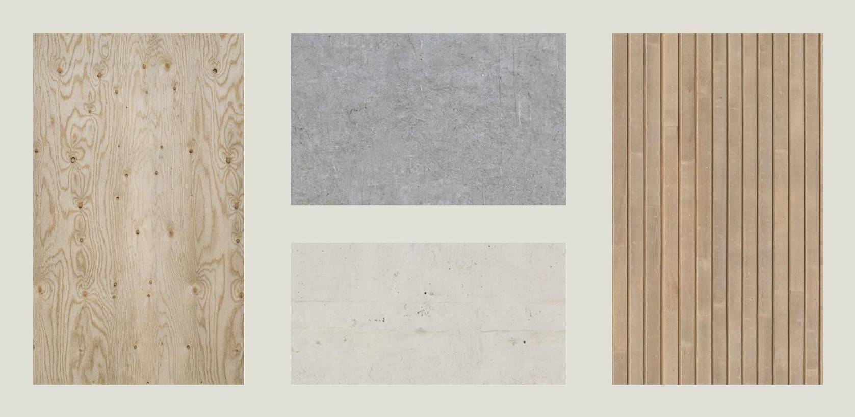 Als Oberflächen des Gebäudes wurden hauptsächlich rohe und unbearbeitete Materialien gewählt, die nicht künstlich hergestellt oder aufgearbeitet werden. Außerdem wird auf Bodenbelag und Putz verzichtet. Geschliffener Estrich und sichtbare Brettsperrholzbauteile bieten im Zusammenspiel eine harmonische Einheit. So wird nicht nur der CO 2- und Ressourcenverbrauch gesenkt, sondern auch Nachhaltigkeit gefördert - "alles wieder trennbar".