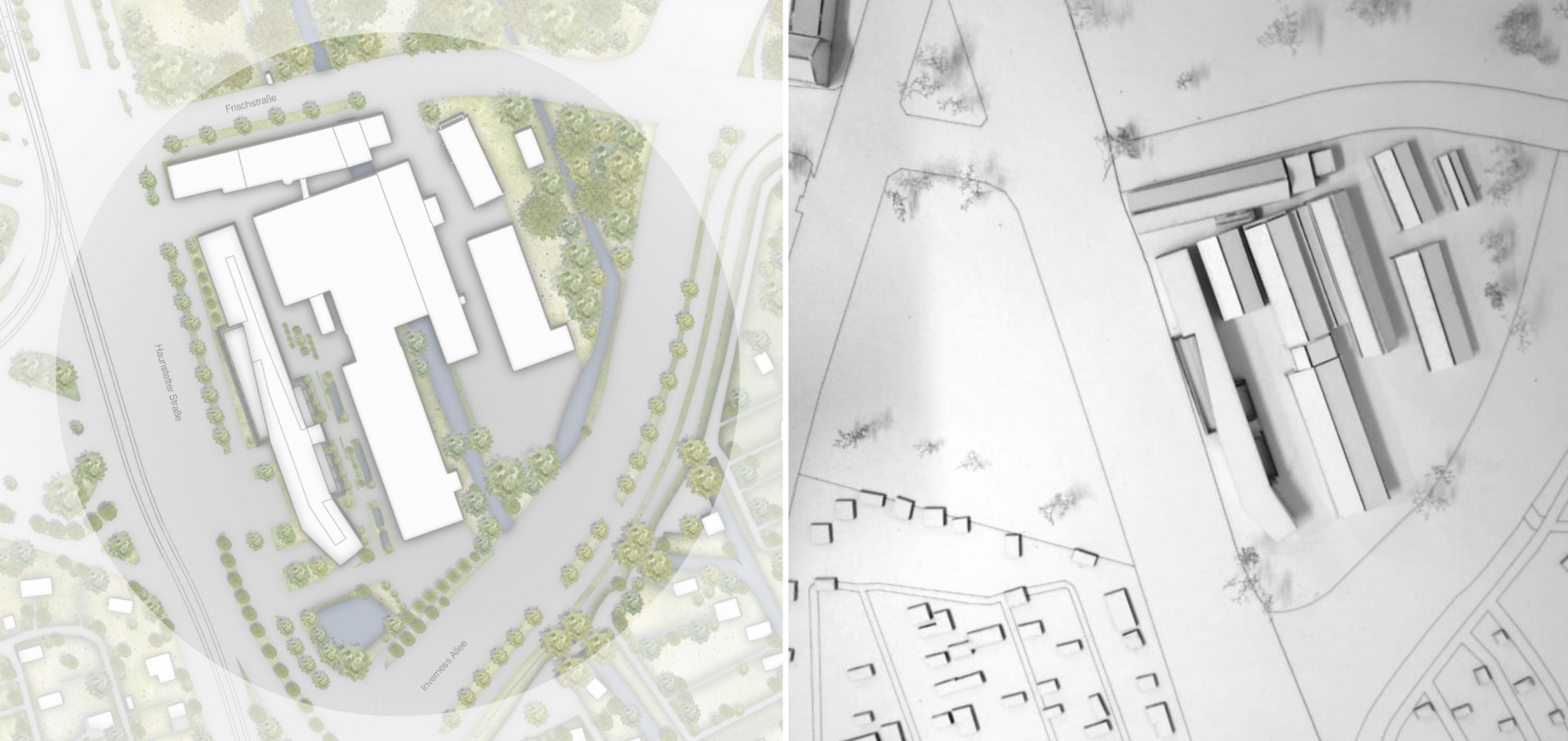 Das Gelände der Hutfabrik Lembert ist für eine solche Entwicklung zur Aufwertung des gewachsenen städtischen Gefüges geeignet und wurde prototypisch untersucht. Es wird im Westen durch die Haunstetter Straße begrenzt, im Südosten durch die Inverness Allee und im Norden durch die Frischstraße. Als traditionsreicher Standort umfasst das Gelände heute neben der immer noch tätigen Hut-Manufaktur eine stark heterogene Nutzung. Auf dem an die Haunstetter Straße angrenzenden Teil des Geländes könnte exemplarisch ein neu zu errichtender Nutzungshybrid als wichtiger Stadtbaustein entstehen und zu einem Katalysator für die weitere Entwicklung eines vielfältigen und lebendigen Areals werden.