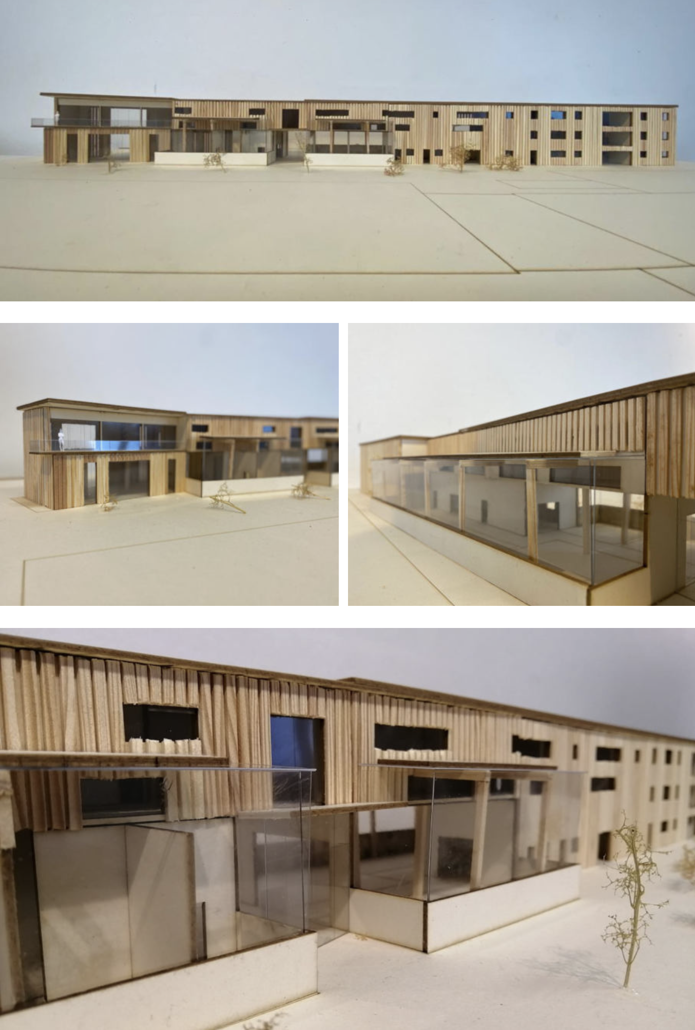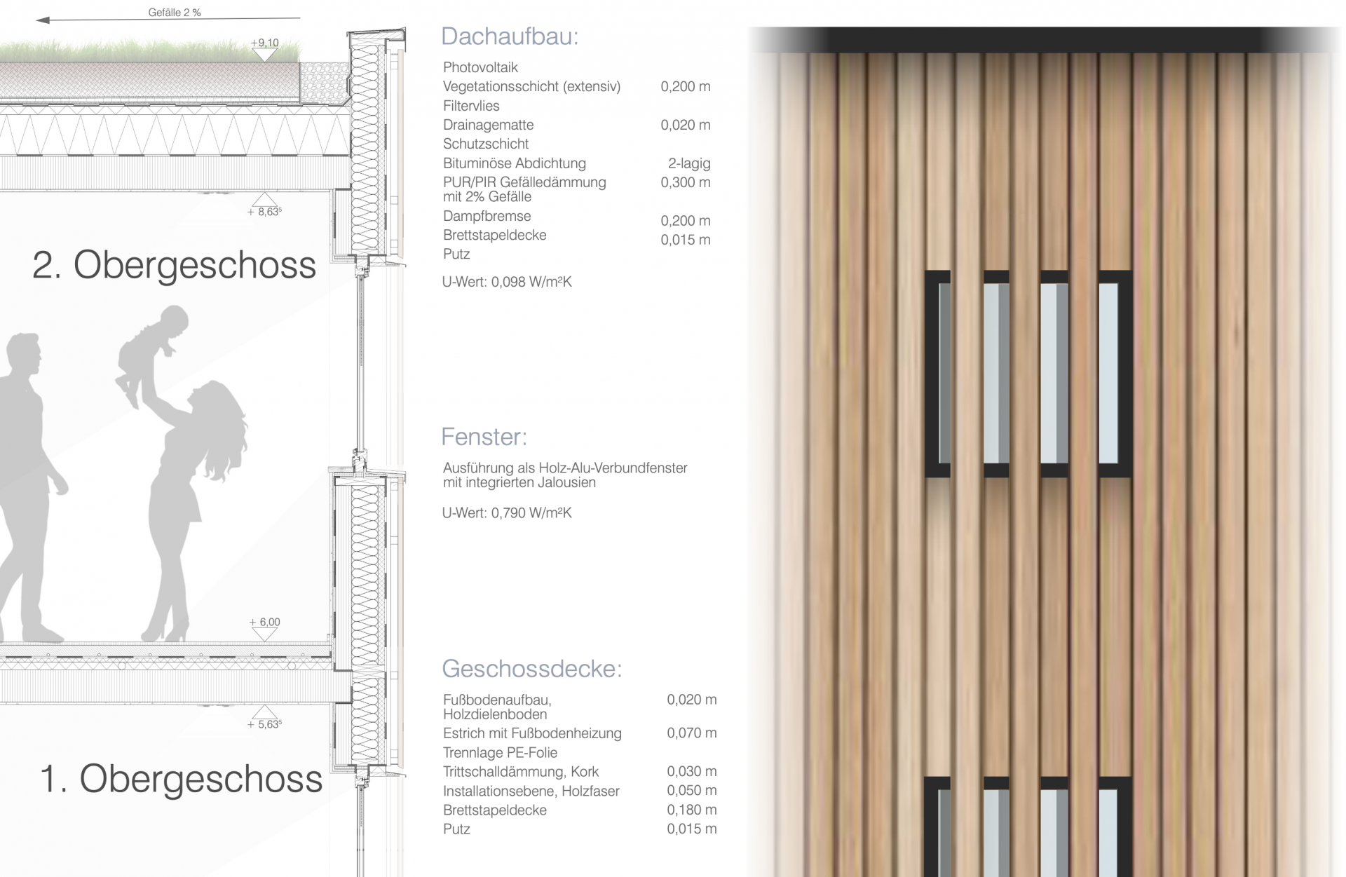 - Materialkonzept incl. Detaildarstellungen M 1:10 der Fassade. Ein besonderer Fokus liegt auf einem nachhaltigen Materialeinsatz incl. der Demontage- und Recycling-Fähigkeit