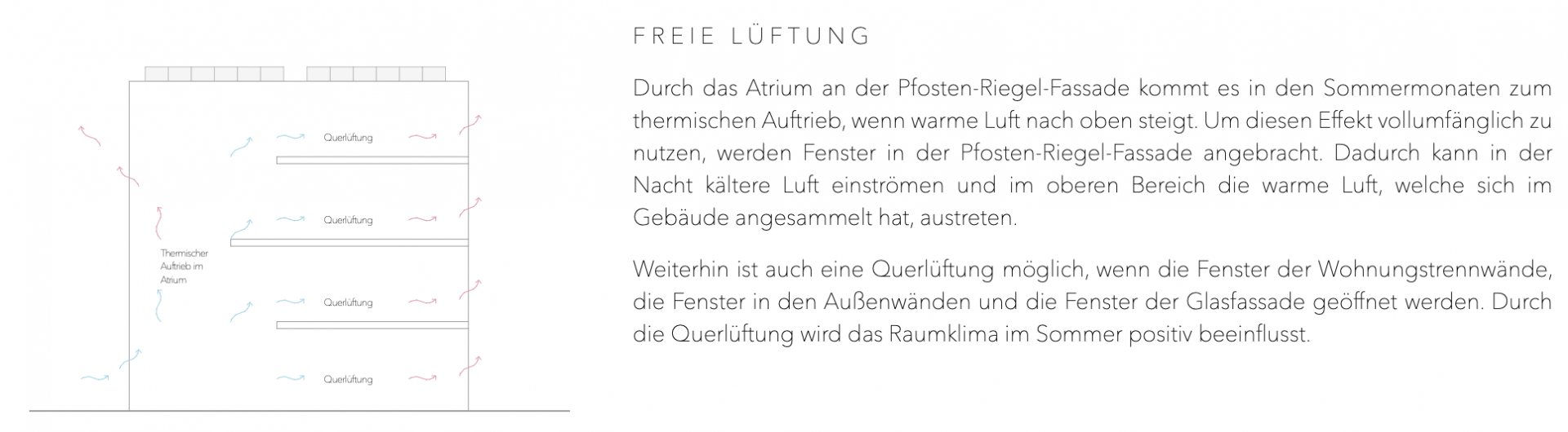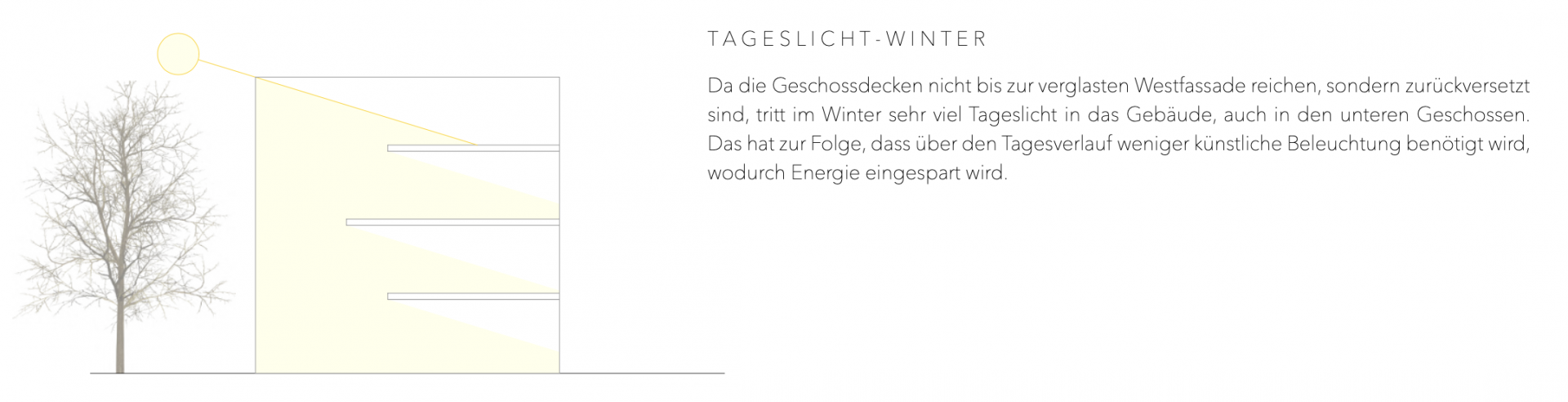 Die Ökobilanzierung mit Ermittlung des Global Warming Potentials, eine kreislaufgerechte Konstruktion mit nachhaltigem Materialeinsatz sowie die Konzeption einer minimierten Gebäudetechnik mit bauphysikalischer Quantifizierung und Optimierung sind integraler Teil des Entwurfsprojekts.