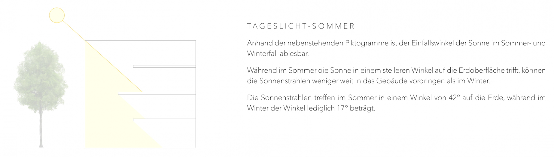 Die Grundrisse schließlich zeigen eine vertikale Schichtung - von der lauten Straße im Westen über die Sonnenschutzebene, die Glaskonstruktion, die Zone der vertikalen Erschließung mit Treppenräumen und Aufzug, einer Verteilerzone und den vielfältigen Nutzungen entlang der Ostseite.