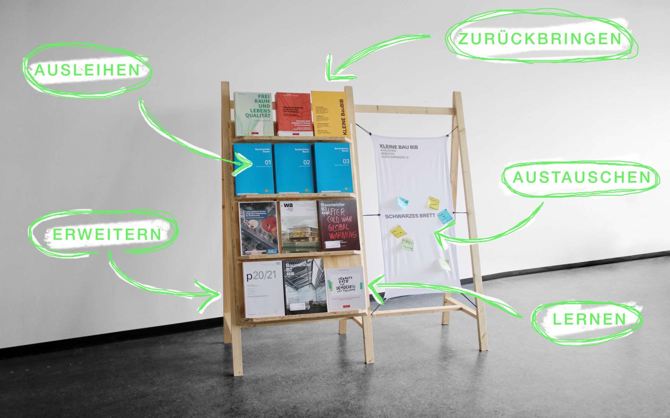 Genau hier setzt das Projekt "Die kleine BauBIB" an. Sie dient als Aufsteller im Arbeitsraum und weist direkt auf großartige Bücher hin, die allen Studierenden auf Vertrauensbasis zur Verfügung stehen. Die direkte Sichtbarkeit lädt zum Entdecken ein, ermöglicht Zufallsfunde und stellt das erforderliche Fachwissen in greifbare Nähe. Nach der Nutzung können die Hefte direkt wieder in die kleine BauBIB gestellt werden, und der oder die Nächste hat die Möglichkeit, sie auszuleihen.