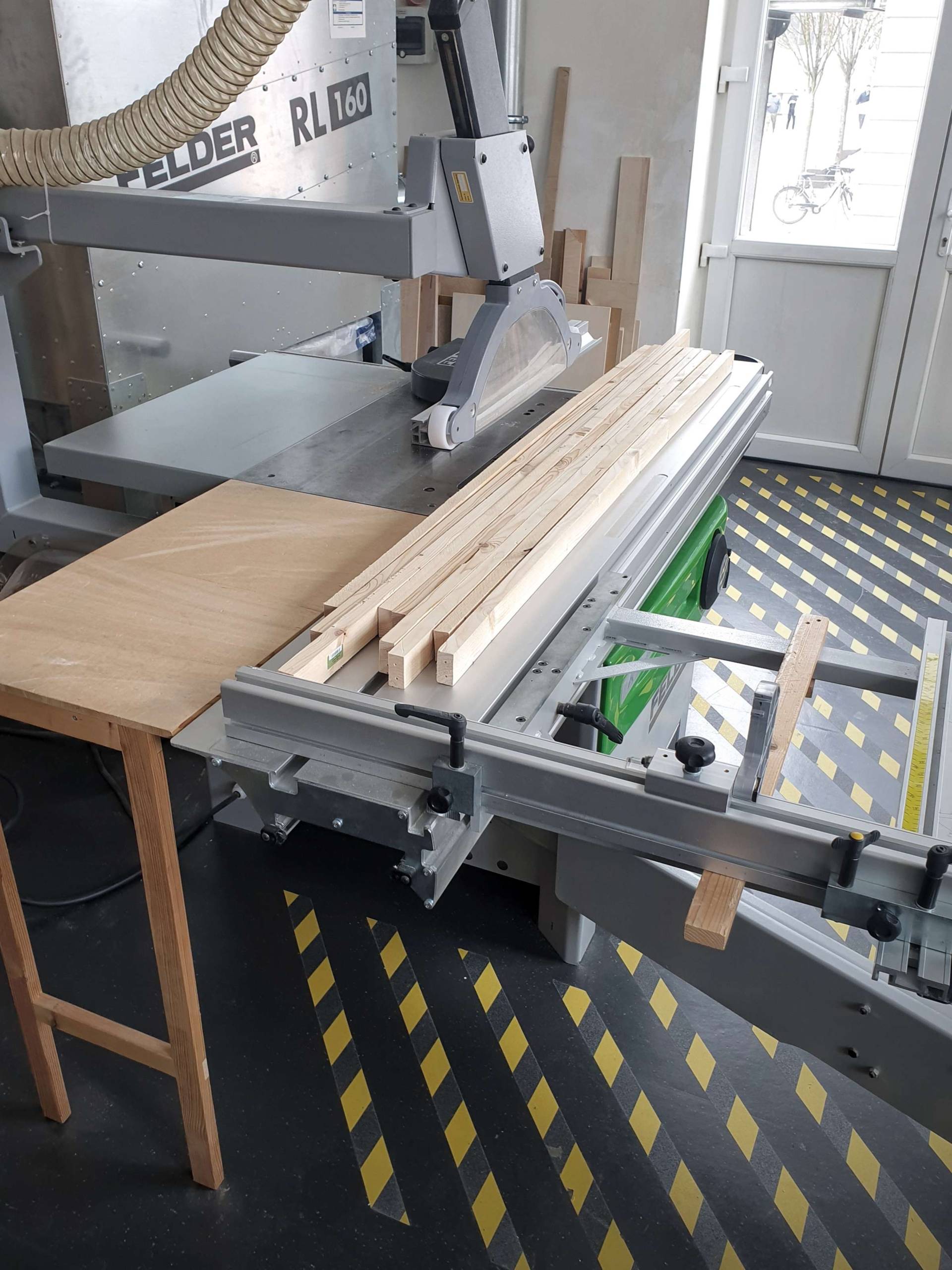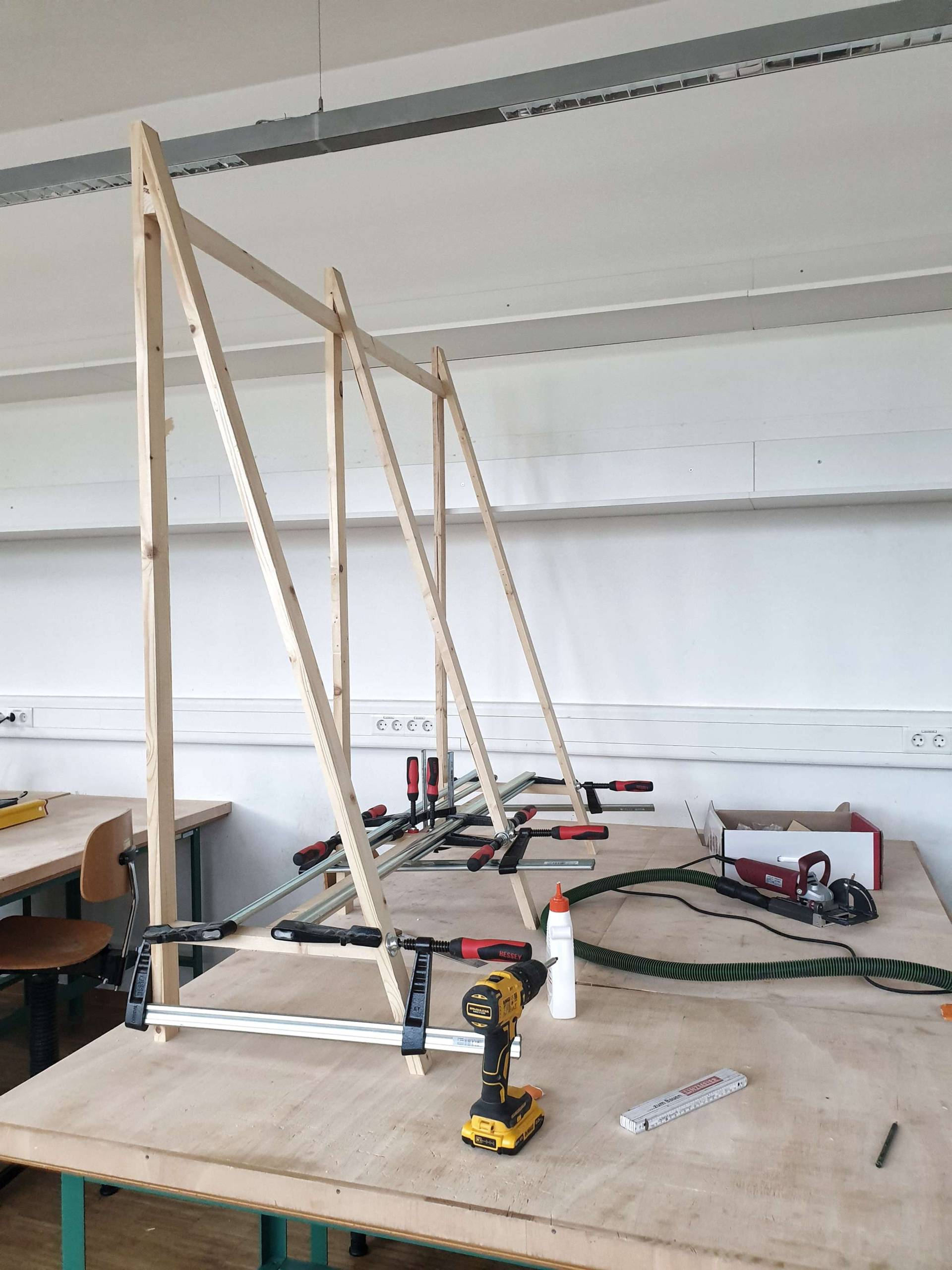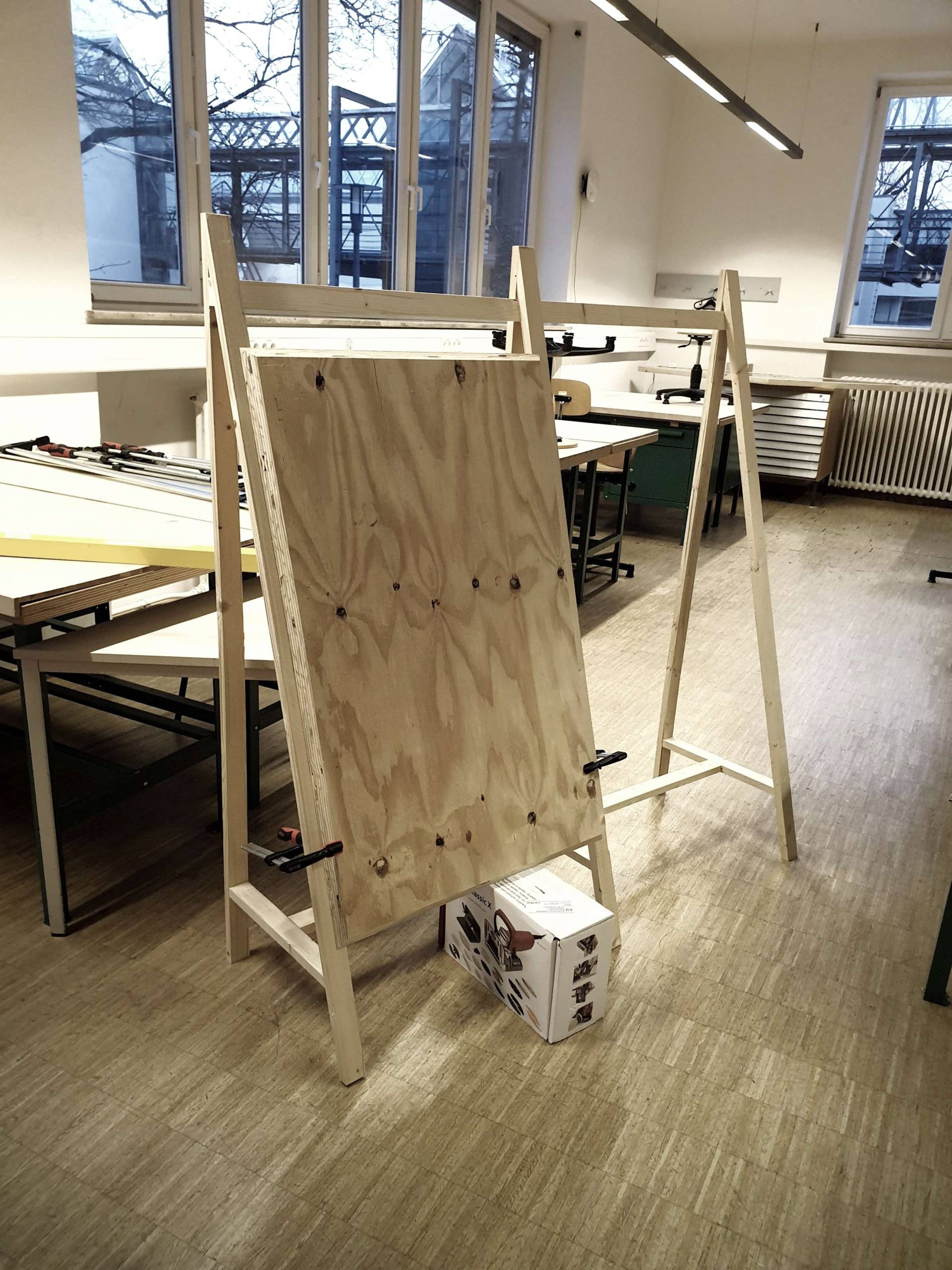 Gebaut wurde der Aufsteller ohne eigenes Budget direkt in der Holzwerkstatt der THA durch Islam Nagla als außercurriculares Projekt.