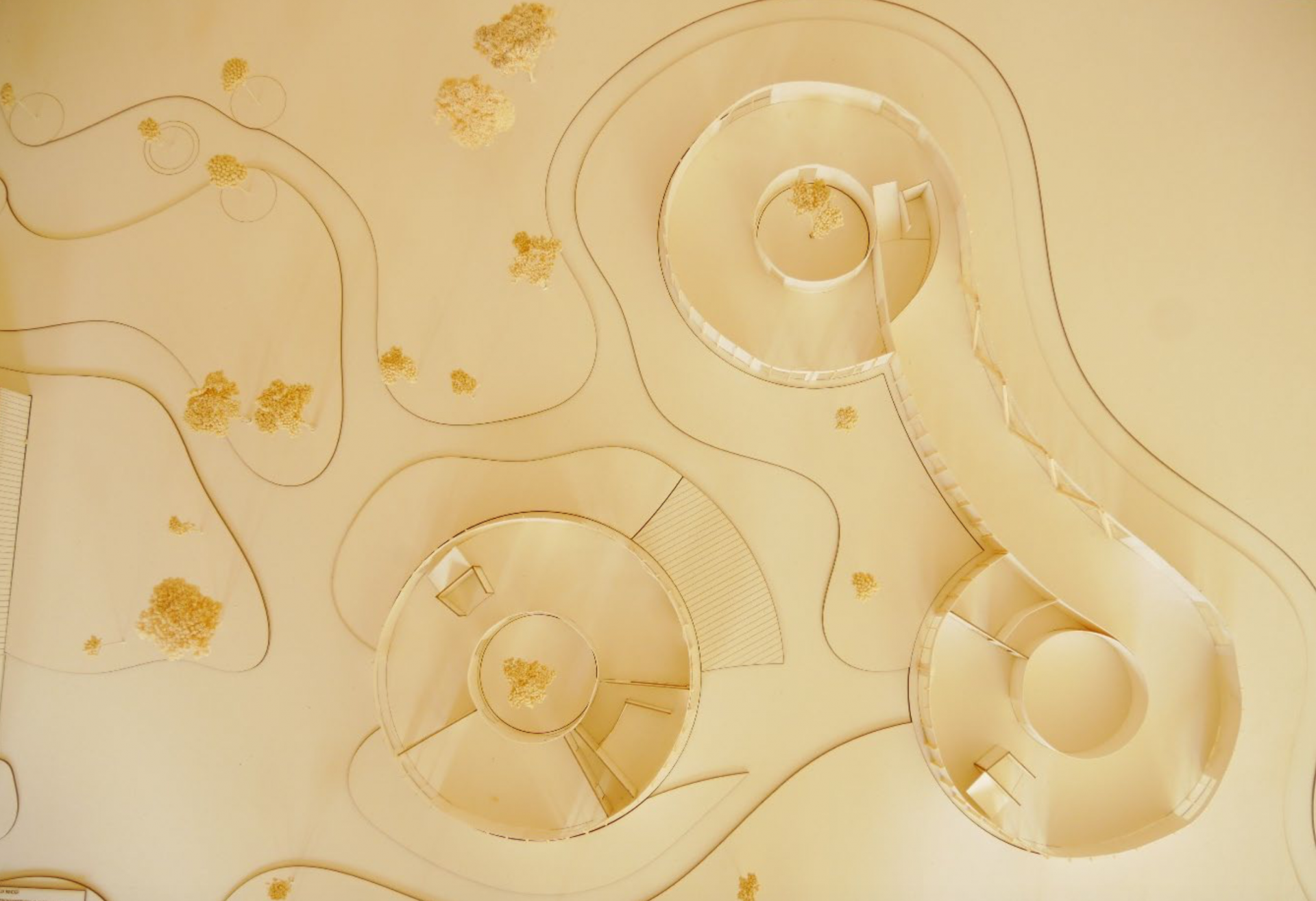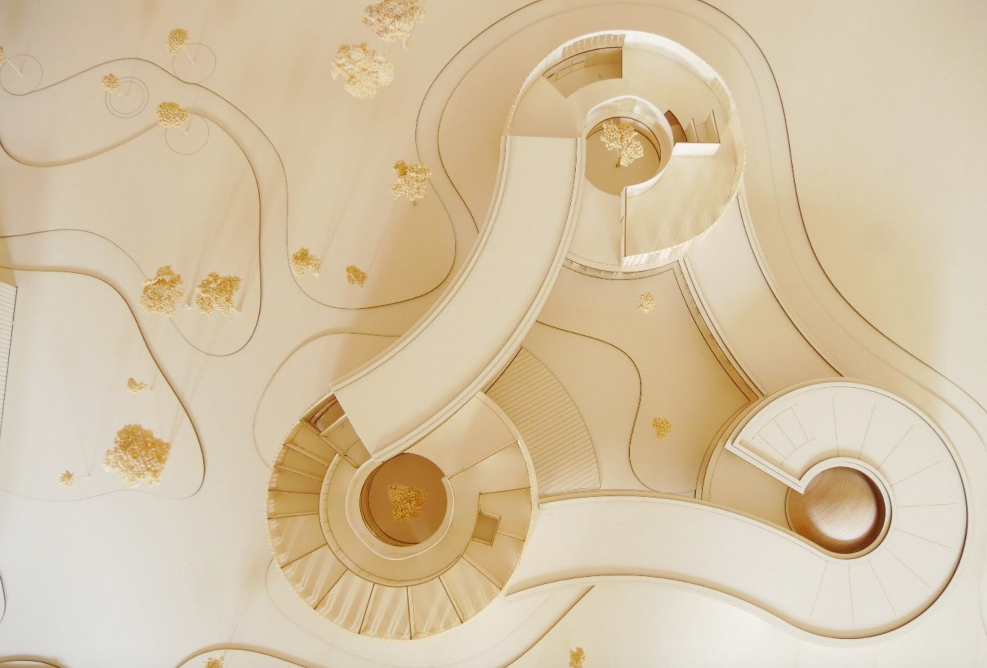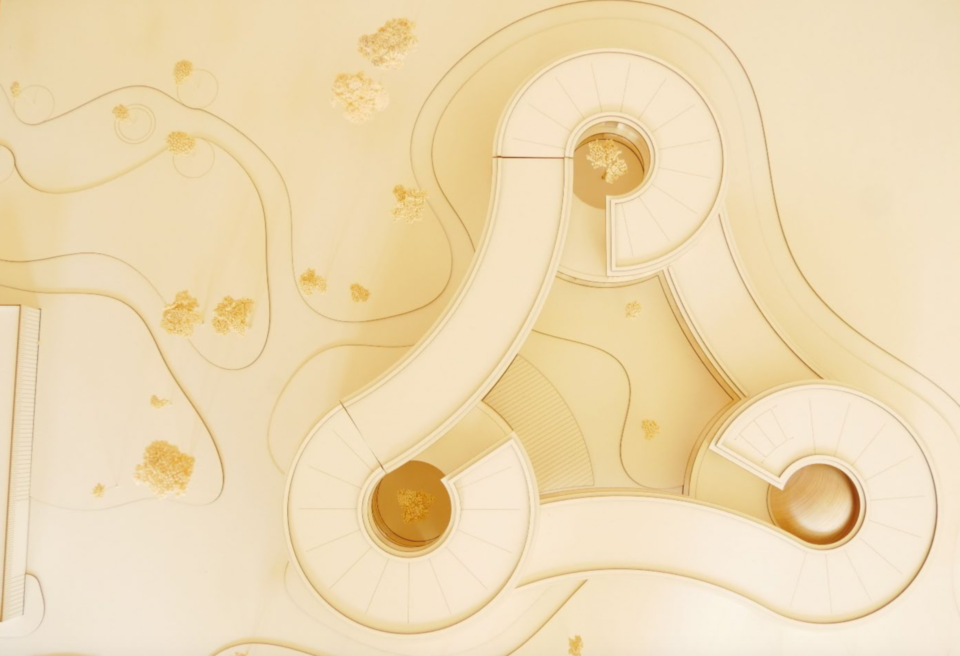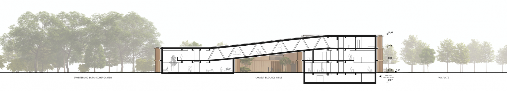 Die Entwurfsidee des neuen Gebäudes ist daraus entstanden, die drei Hauptnutzungen - den allgemeinen Bereich mit Foyer, das Naturmuseum und das Planetarium - in eigenständige Zylindern als Eckpunkte eines gleichschenkligen Dreiecks anzuordnen. Die einzelnen Körper wiederum werden auf unterschiedlichen Höhenebenen miteinander verbunden.