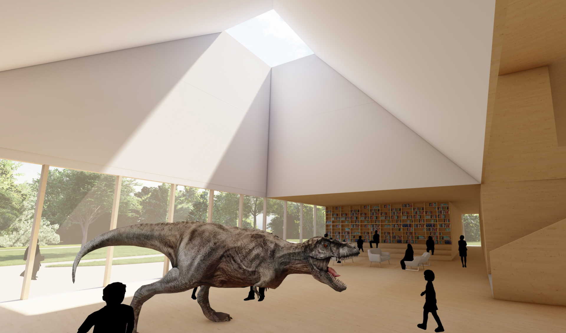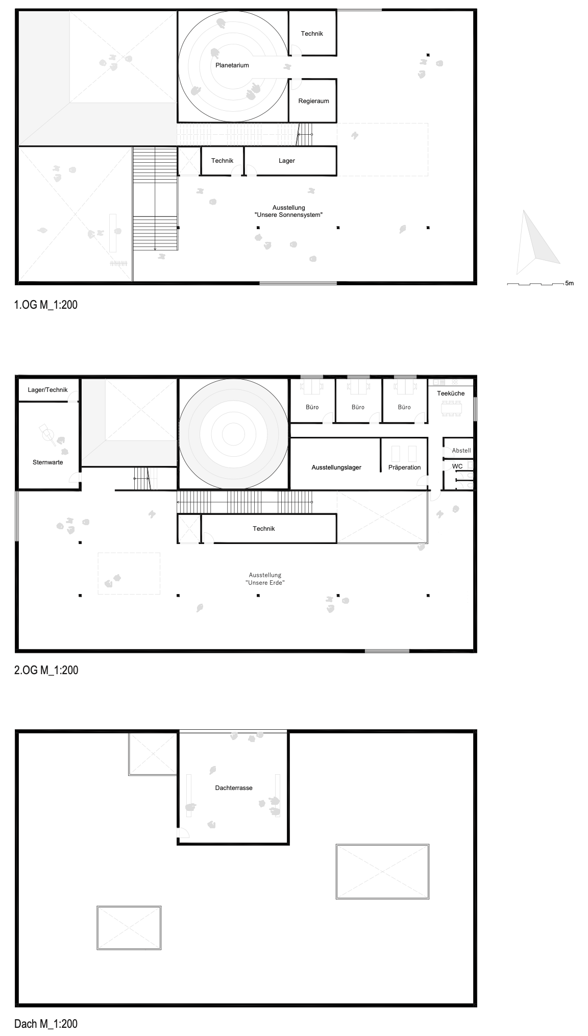 Aufgabe ist daher der Entwurf eines Neubaus für das Augsburger Naturmuseum mit Planetarium und einer Sternwarte. Das Programm umfasst zusätzlich einen Veranstaltungsbereich „Forum“, ein Cafe/ Restaurant und pädagogische Bereiche mit Werkstattcharakter. Ein Übernachtungsbereich mit 30 Schlafplätzen bietet Raum z.B. für Schulklassen oder Erwachsenengruppen. Die Synergie aus dem Hybrid unterschiedlicher Nutzungen und dem besonderen Ort soll voll entfaltet werden. Hierzu ist eine besonders hohe Qualität der Innenbereiche, der Blickbeziehungen sowie der Kommunikationsflächen unumgänglich. Ebenso zentral ist auch die Wirkung nach außen, bei der das Gebäude selbst eine exemplarische Vorbildfunktion für zukunftsfähiges Bauen einnimmt.“