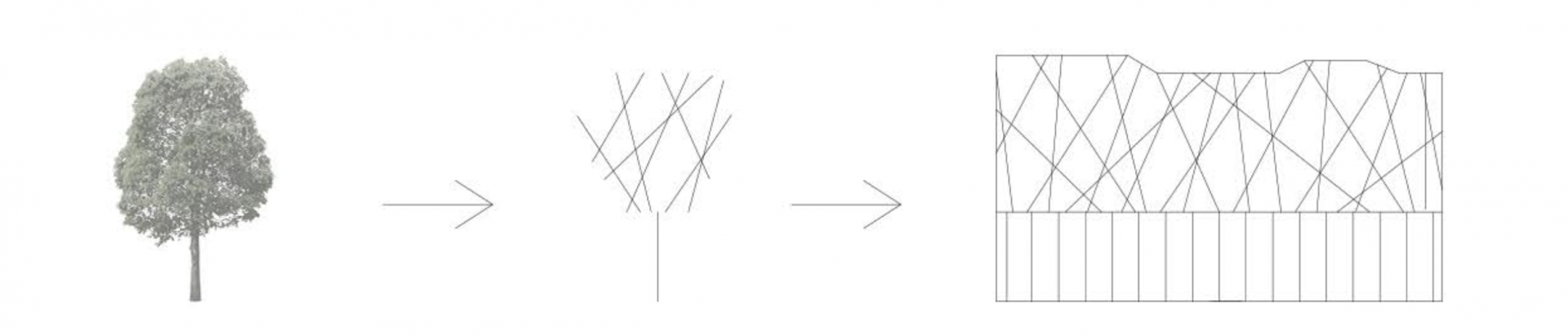 Die formale Ausgestaltung des Umweltmuseums entwickelt sich aus dem Umweltbildungszentrum und der Nutzung heraus und liefert den Besuchern einen abstrakten Eindruck des im Gebäude behandelten Themas. Durch die ablesbare Formensprache des Gebäudes sowie die Ausgestaltung der Fassade durch Materialität und Struktur und die Einbettung und Integration in den gegebenen Außenraum entsteht ein Museumskomplex mit Wiedererkennungsmerkmal. Der Baukörper gliedert sich in zwei Bereiche, einem transparenten aufgelösten Erdgeschoss, dass im ständigen Austausch mit dem Außenraum steht und einem geschlossenen, introvertierten Bereich des 2. und 3. Obergeschosses, der den Fokus der Besucher auf die Ausstellung richtet. Der untere aufgelöste Teil des Umweltmuseums, der mit seinen außenliegenden Stützenanordnungen den Bezug zum Umweltbildungszentrum herstellt, und der geschlossene Bereich mit einer verästelten Holzfassade stellen die Abstraktion einer Baumgruppe dar.