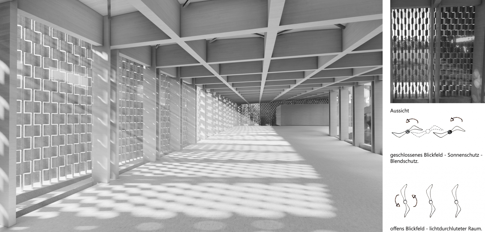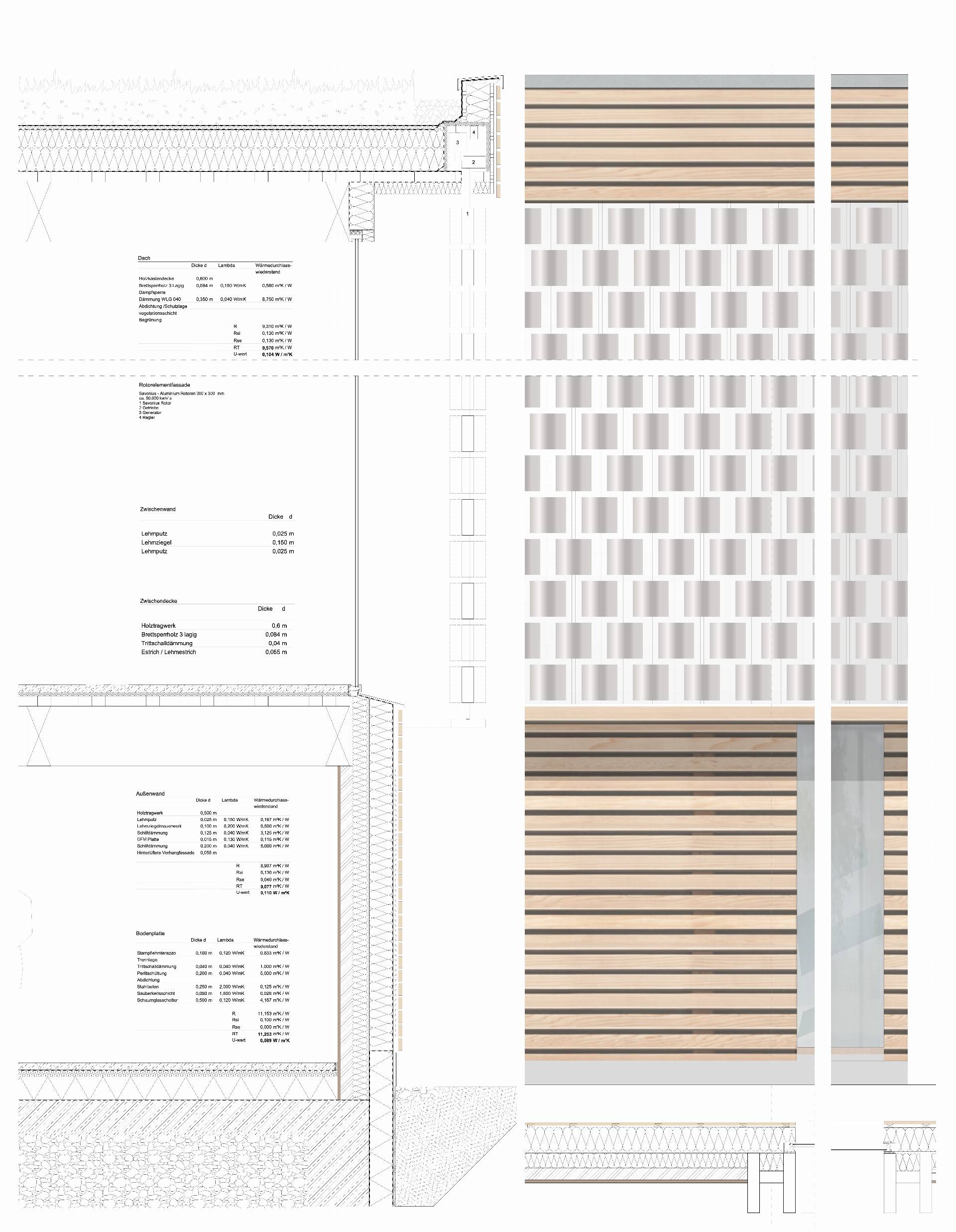 - Materialkonzept incl. Detaildarstellungen M 1:10 der Fassade. Ein besonderer Fokus liegt auf einem nachhaltigen Materialeinsatz incl. der Demontage- und Recycling-Fähigkeit