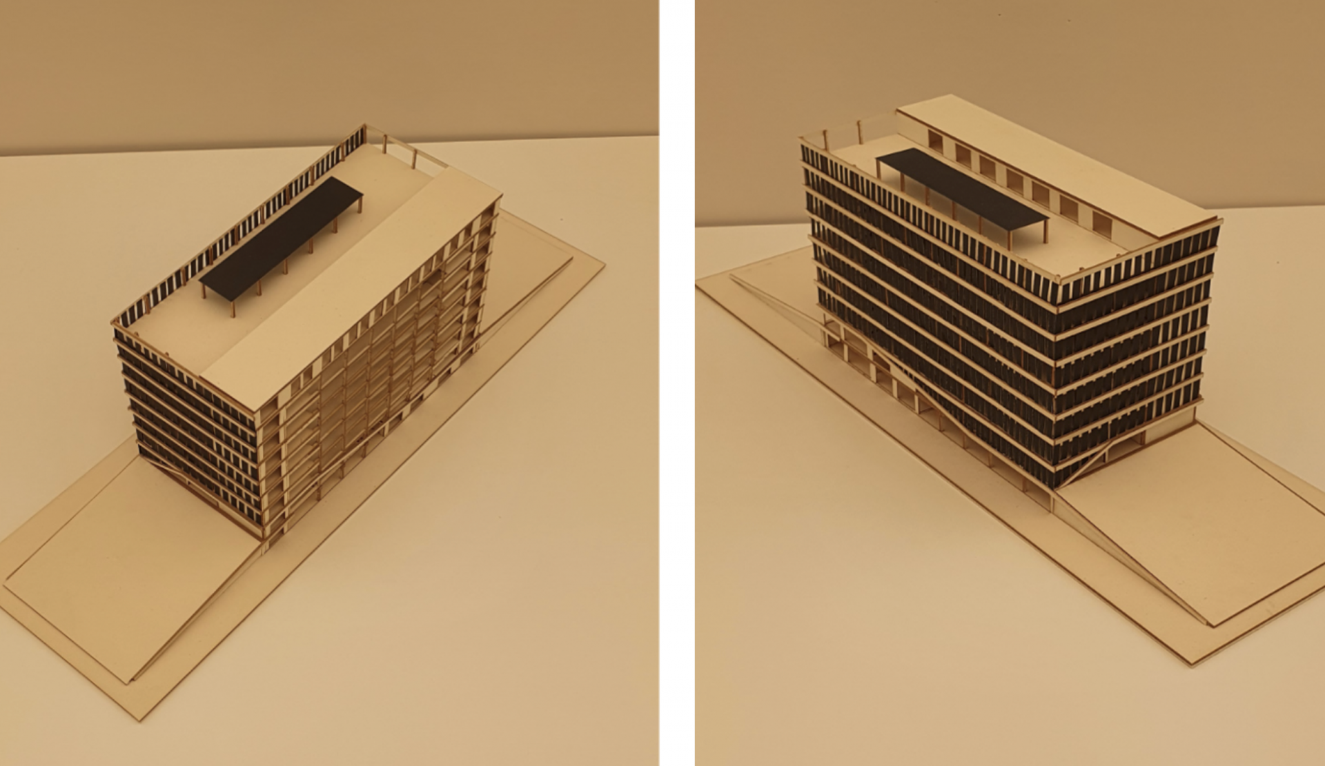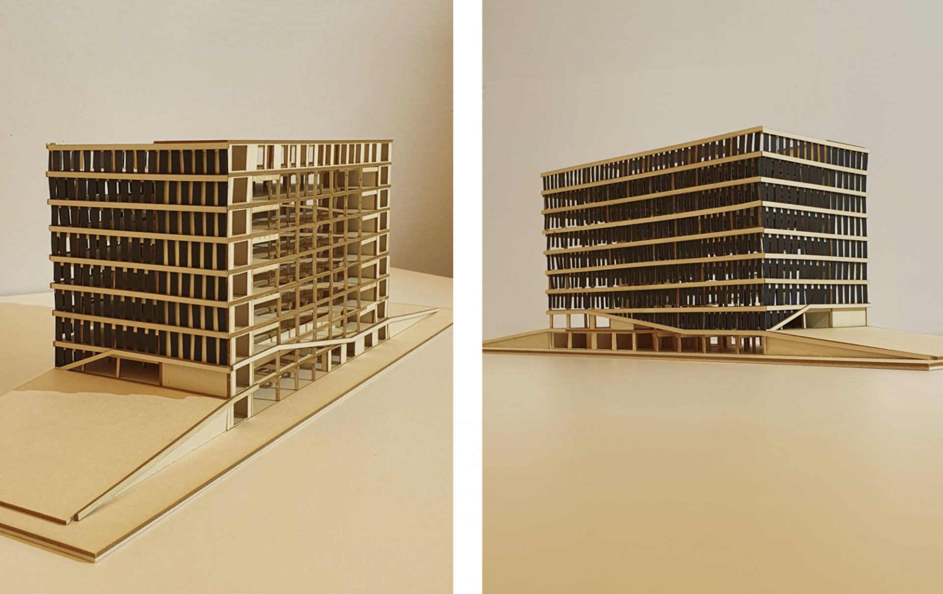 - Architektonischer Entwurf incl. städtebaulicher Einbindung auf Grundlage einer Standortanalyse sowie Analysen und Umsetzung zur Entwicklung einer eigenen Interpretation der Nutzungstypologie mit Darstellungen und Modell im Maßstab 1:200.