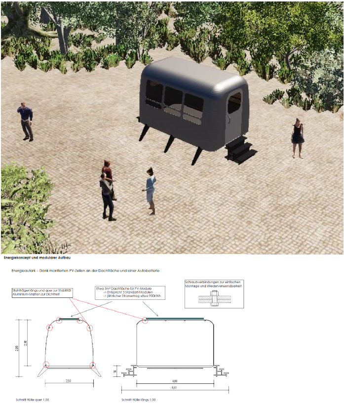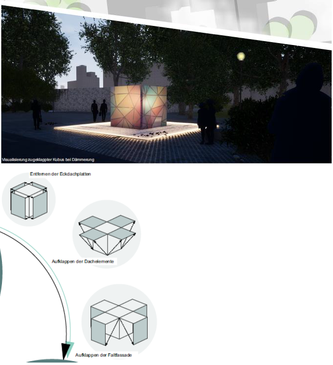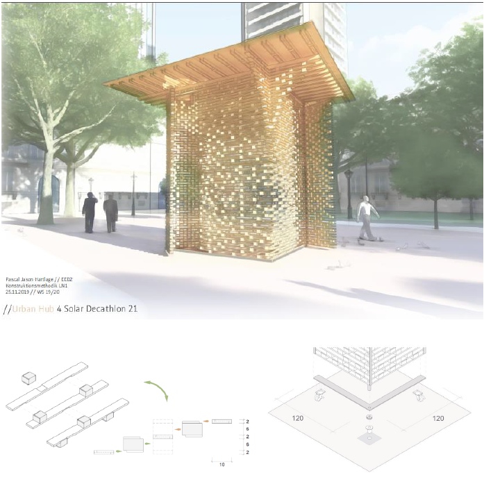 Studierende des Masterstudiengangs Energie Effizienz Design (E2D) haben in Zusammenarbeit mit Auszubildenden der Firmen LEW, PERI und WICONA einen Entwurf für den Wettbewerb „info energiewendebauen – An urban hub for the SDE21“ eingereicht. Dabei wurde ein Konzept für einen Informationspunkt der Forschungsinitiative ENERGIEWENDEBAUEN in Form eines „SDE21_urban hubs!“ für den nächsten europäischen Solar Decathlon in Wuppertal im Jahr 2021 entwickelt.