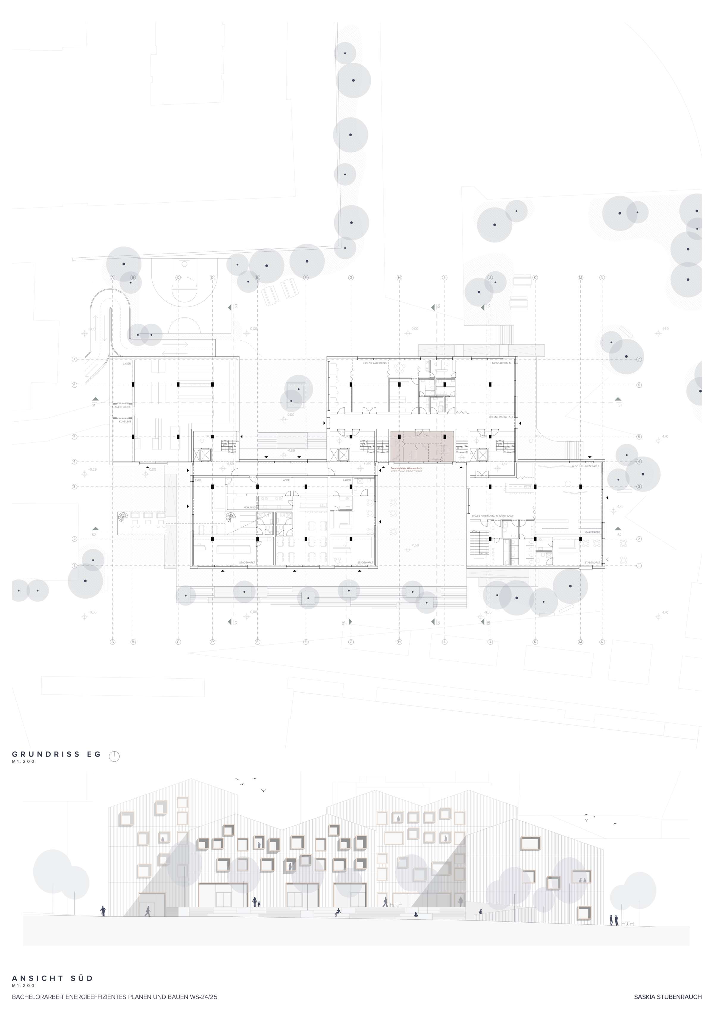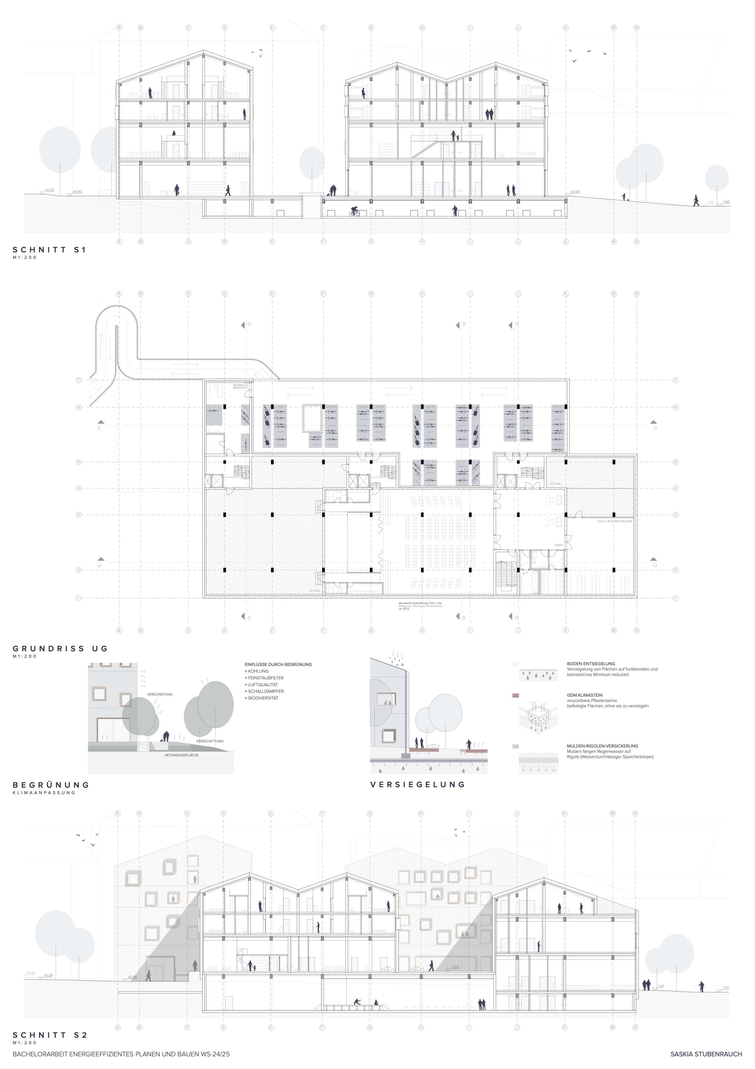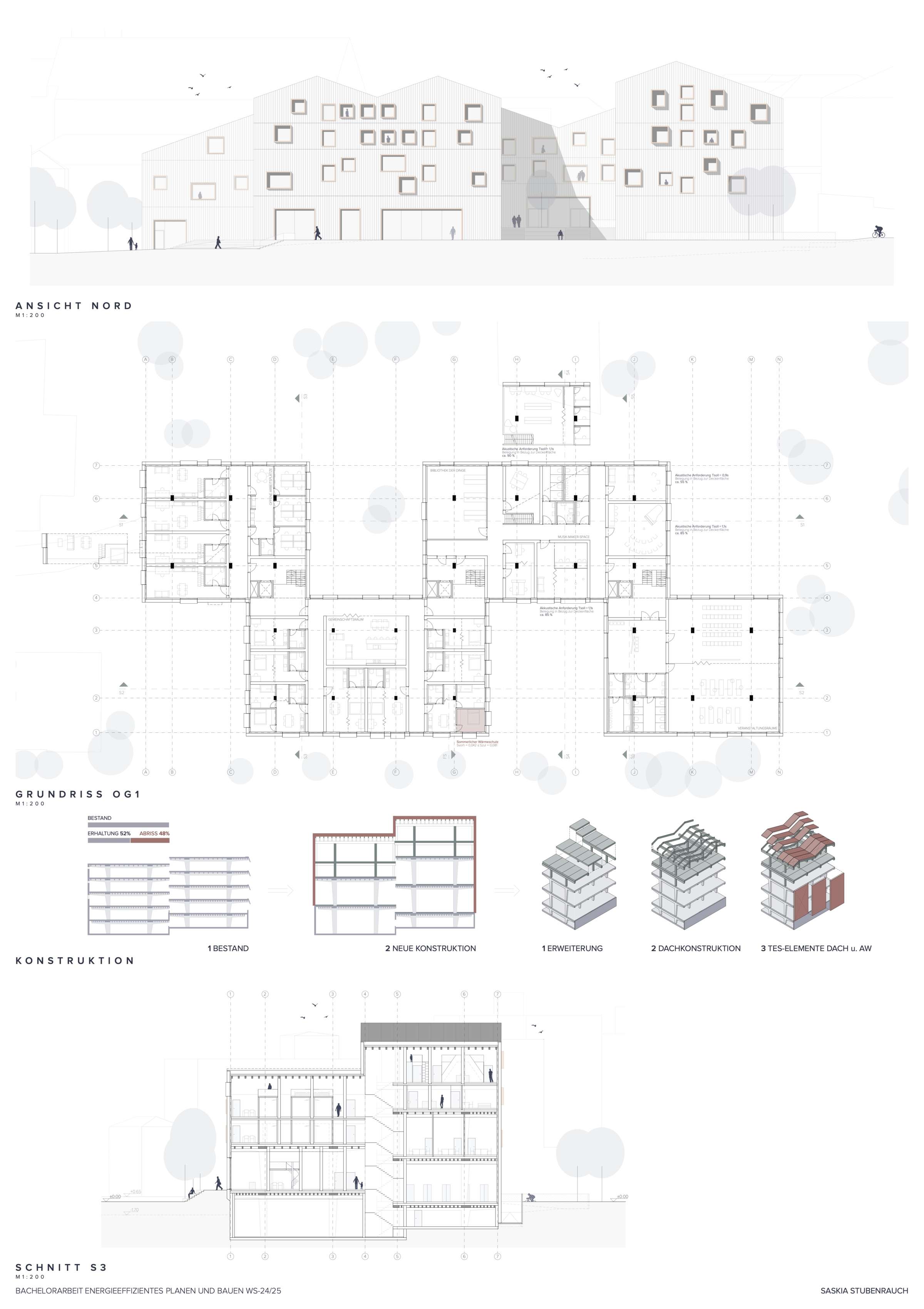 Integraler Entwurf mit Schwerpunkt Bauen im Bestand, klima- und ressourcengerechte Sanierung und Erweiterung.