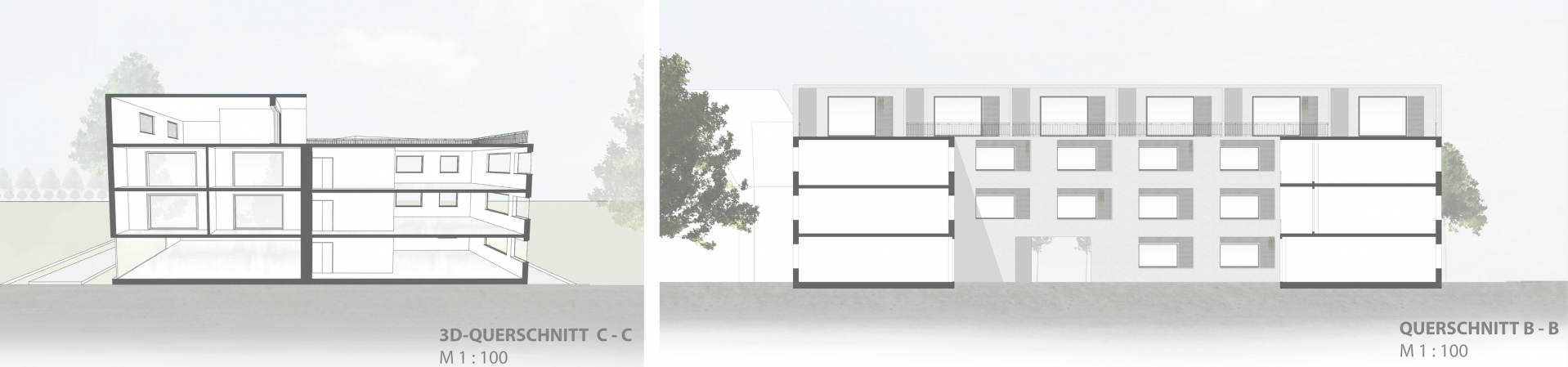 - Grundrisse, Ansichten, Schnitte (M 1: 100)