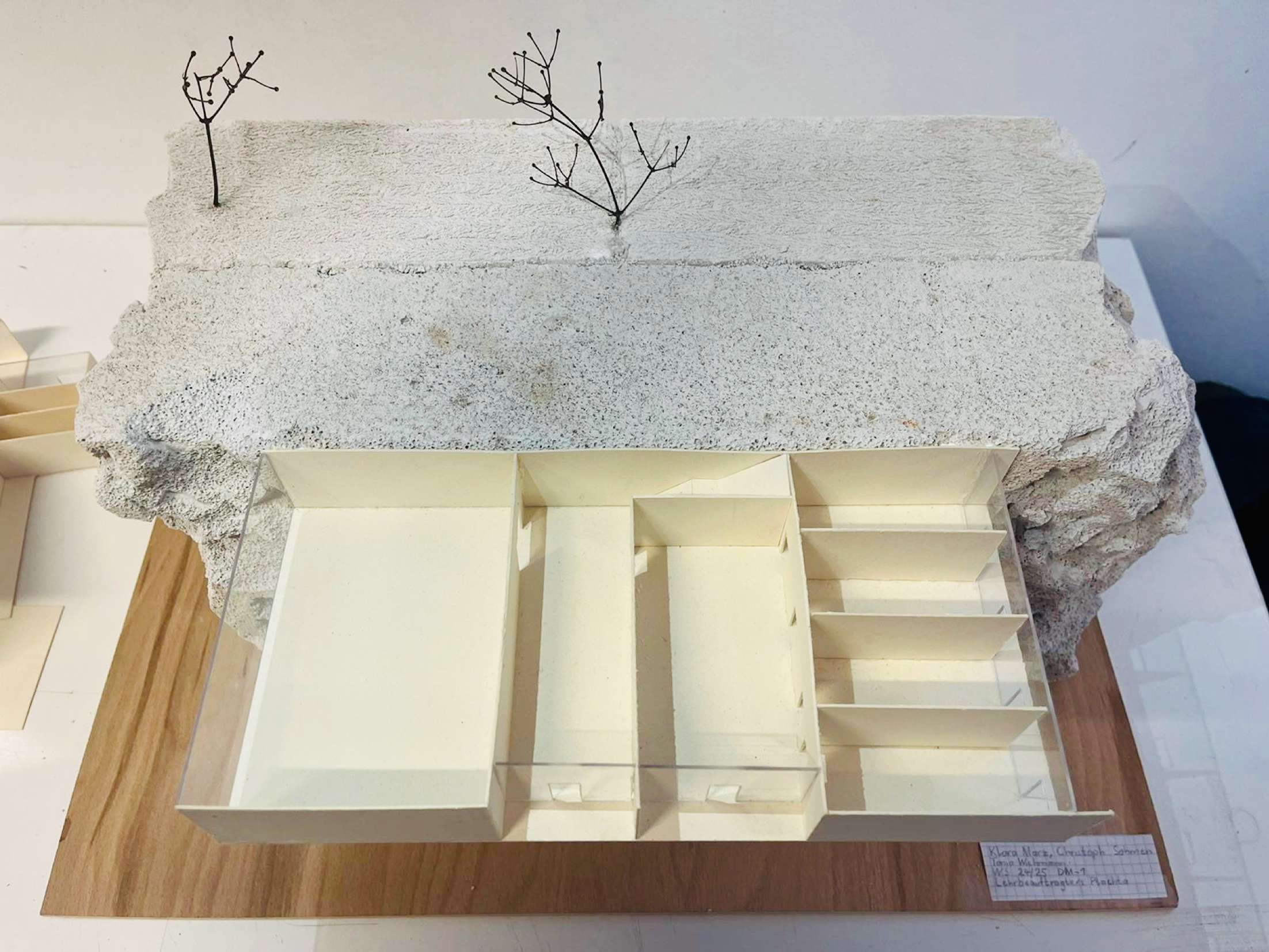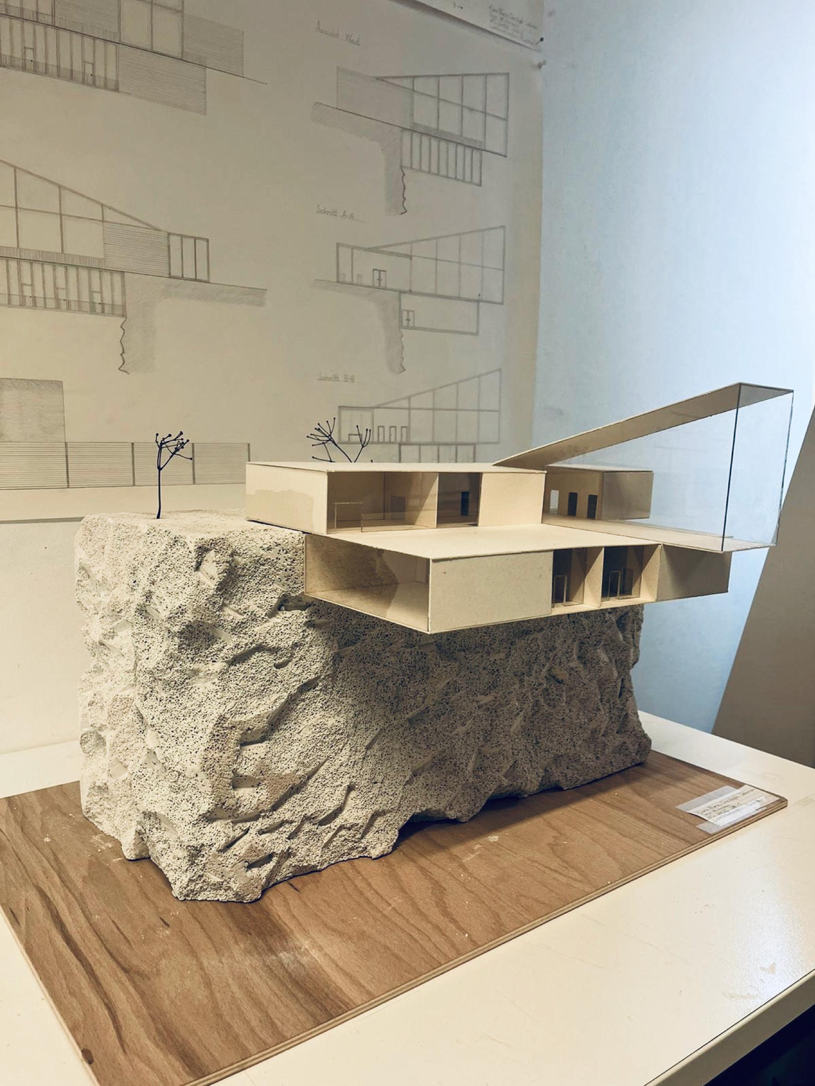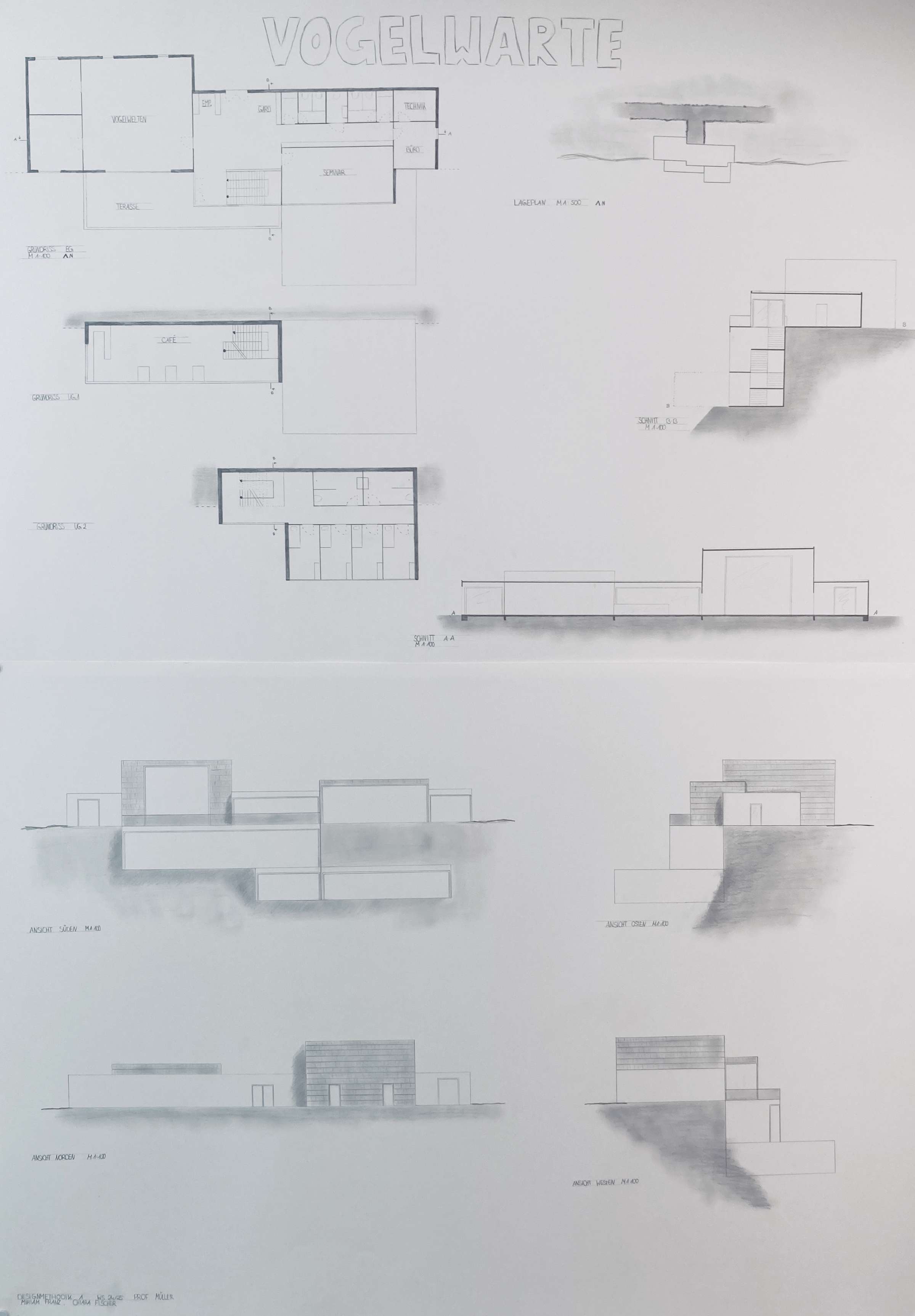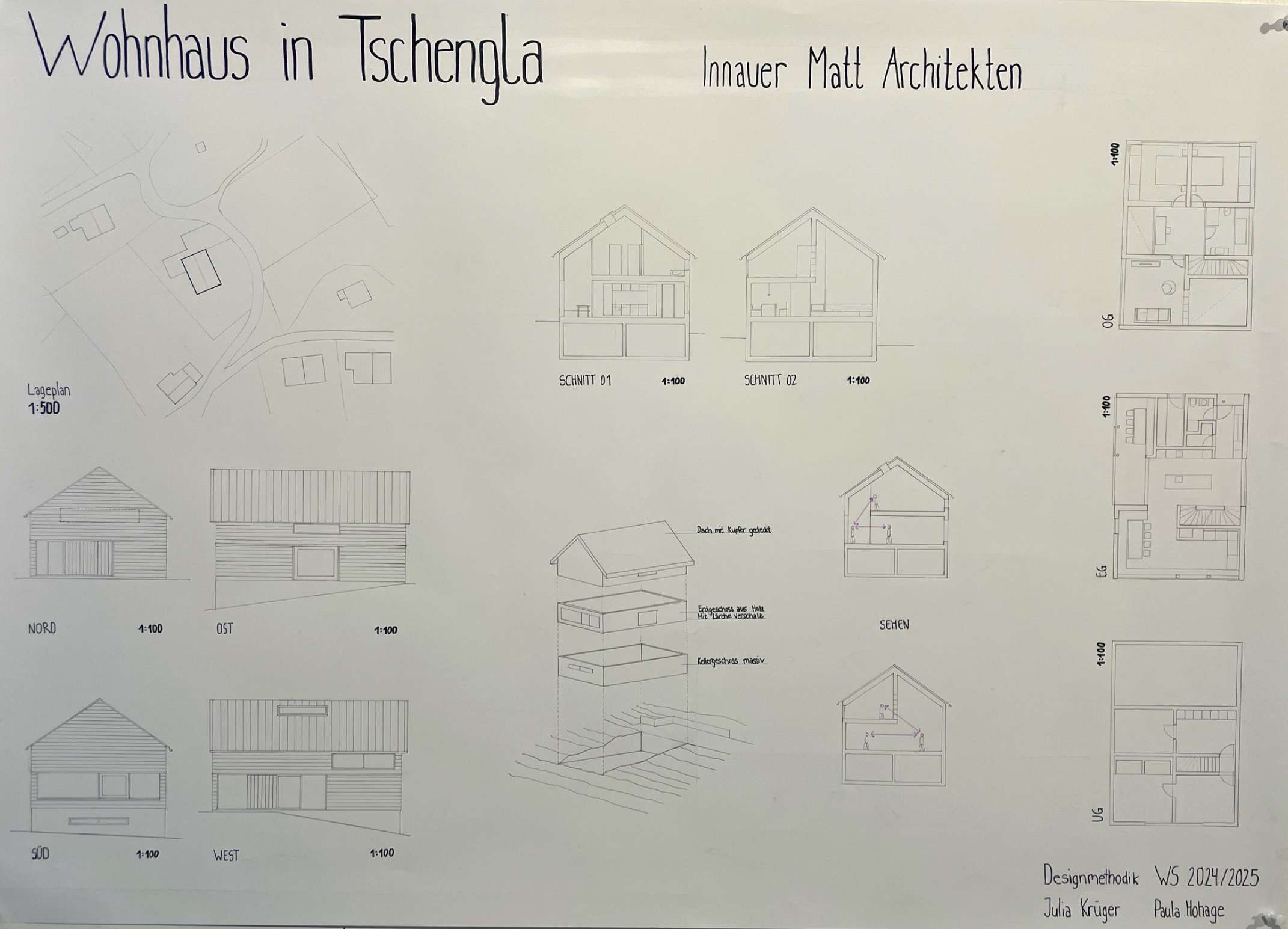 Im Modul "Designmethodik 1" ging es zunächst darum, anhand bereits realisierter Gebäude architektonische Konzepte nachzuvollziehen, zu entschlüsseln und in Zeichnung und Modell zu kommunizieren. Im zweiten Schritt wurde das Freihandzeichnen im Rahmen einer Augsburg-Exkursion geübt. Schließlich die größte Herausforderung: Die Studierenden präsentierten ihren ersten eigenen Entwurf "Vogelwarte - Umweltbildungsstation im Naturschutzgebiet Allgäuer Hochalpen" im Rahmen einer großen Ausstellung auf den Fluren der Fakultät.