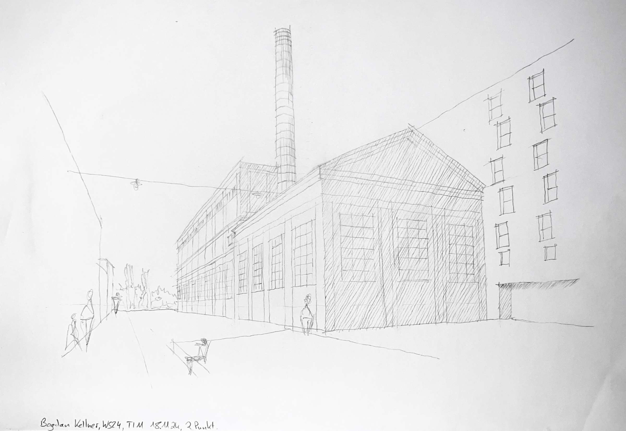 E2D Erstsemester-Studierende starten mit Analyse, Freihandzeichnen und erstem Entwurfsprojekt