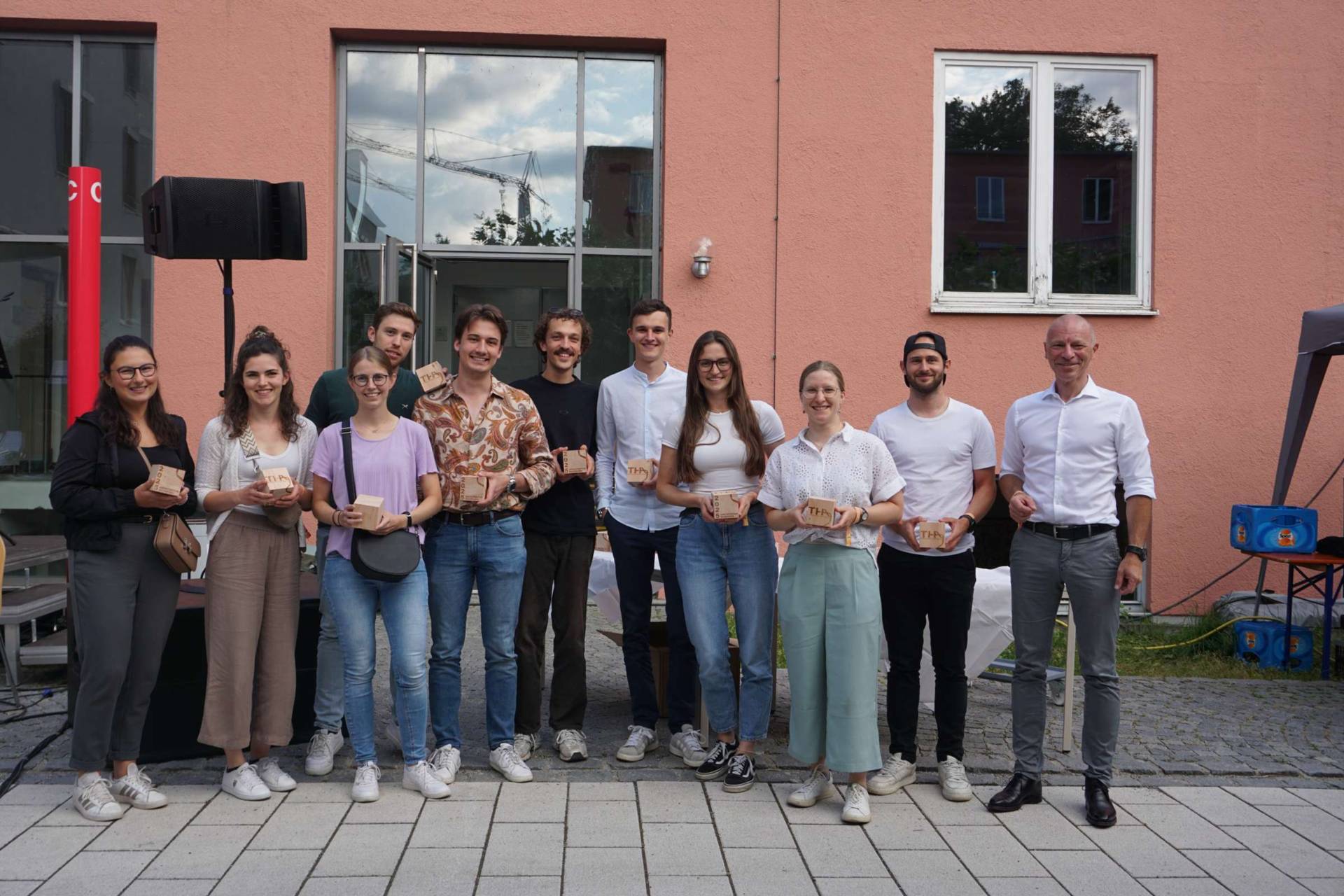 Ein jährlich wiederkehrender, fester Programmpunkt war die feierliche Verabschiedung unserer Absolvent:innen der Studiengänge Architektur, Bauingenieurwesen und E2D. Als Erinnerung erhielten sie den traditionellen THA-Holzwürfel. Außerdem wurde der WBG-Preis verliehen – nähere Informationen zur tollen Leistung unserer Studierenden finden sich in einer separaten Meldung (Link).