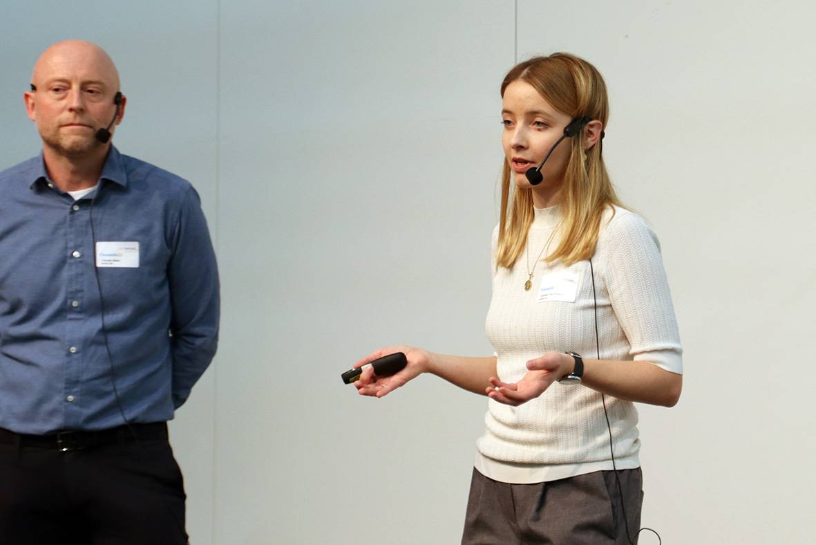 Florian Schmidt, Schüco International KG, und Kilian van Lier, Vertiko GmbH, steuerten zum Abschluss des Nachmittagspanels die Herstellersicht bei und schilderten, welche Herausforderungen bei der Integration von Fassadenbegrünung in Fassadensysteme zu lösen sind.