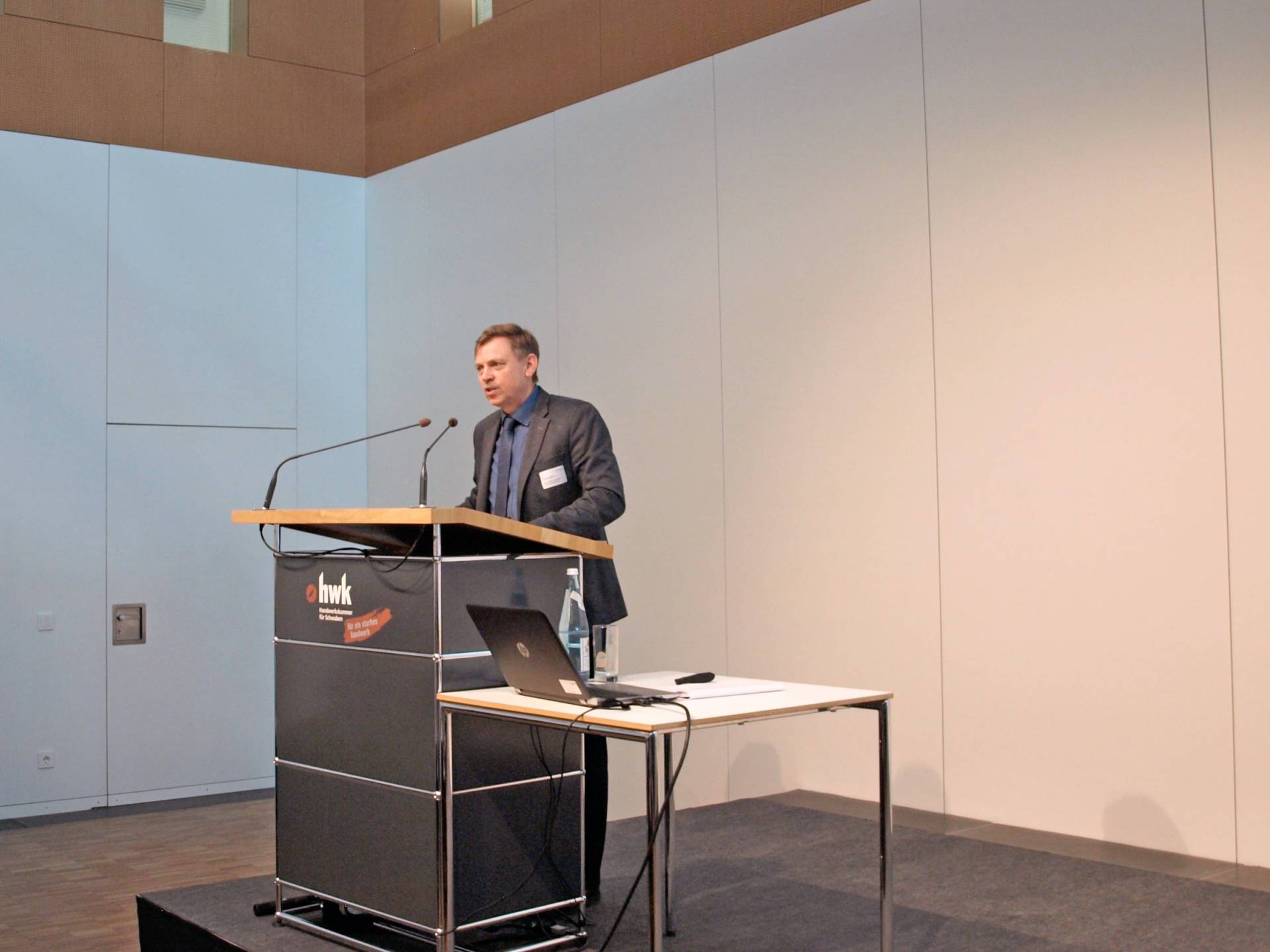 Falk Beckmann (Deutsches Institut für Bautechnik (DIBt), Berlin), sprach über Zulassung und Genehmigungsverfahren für thermisch getrennte Befestigungen für vorgehängte hinterlüftete Fassaden, die zwar in Analogie, aber noch außerhalb des Eurocode zu führen sind.