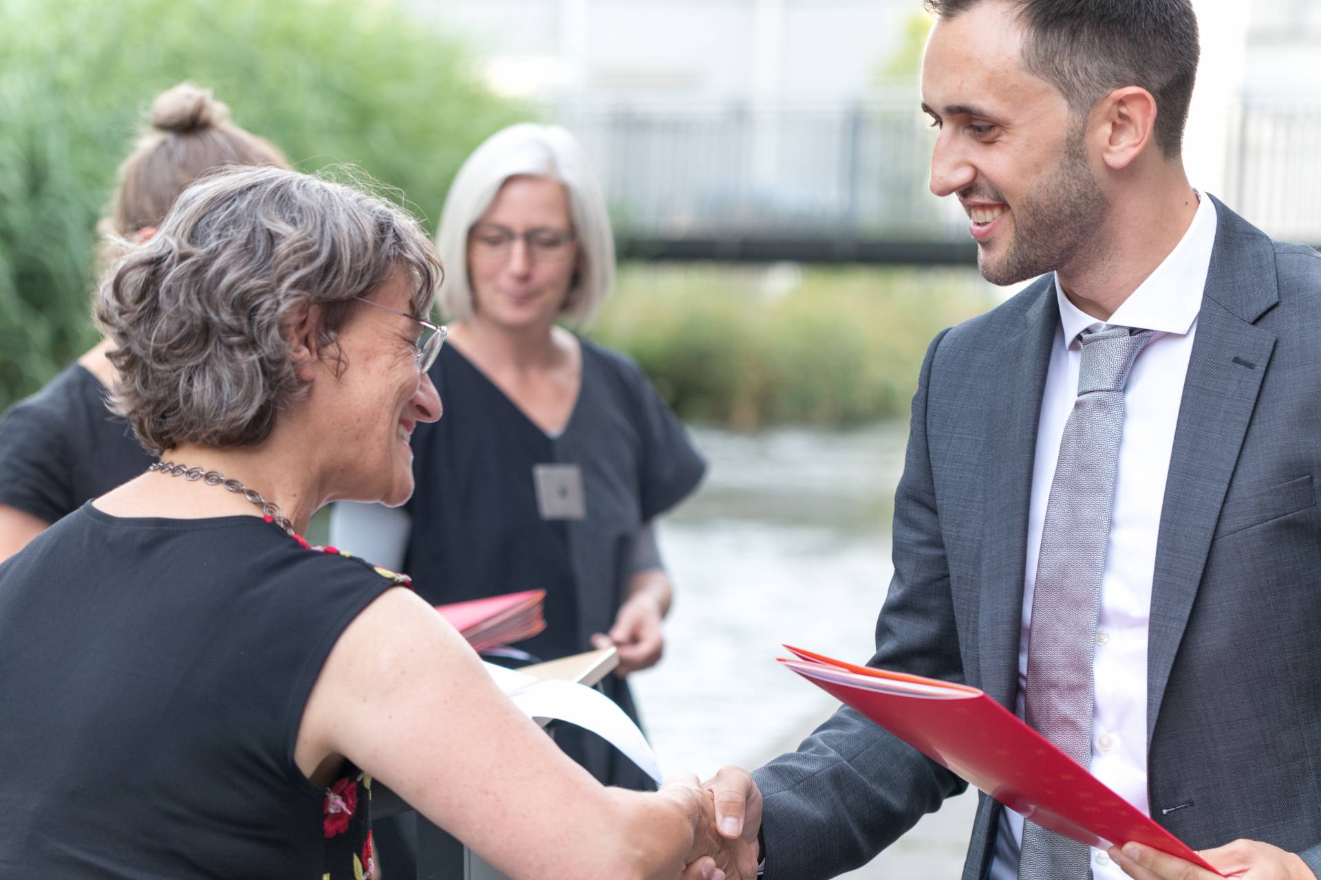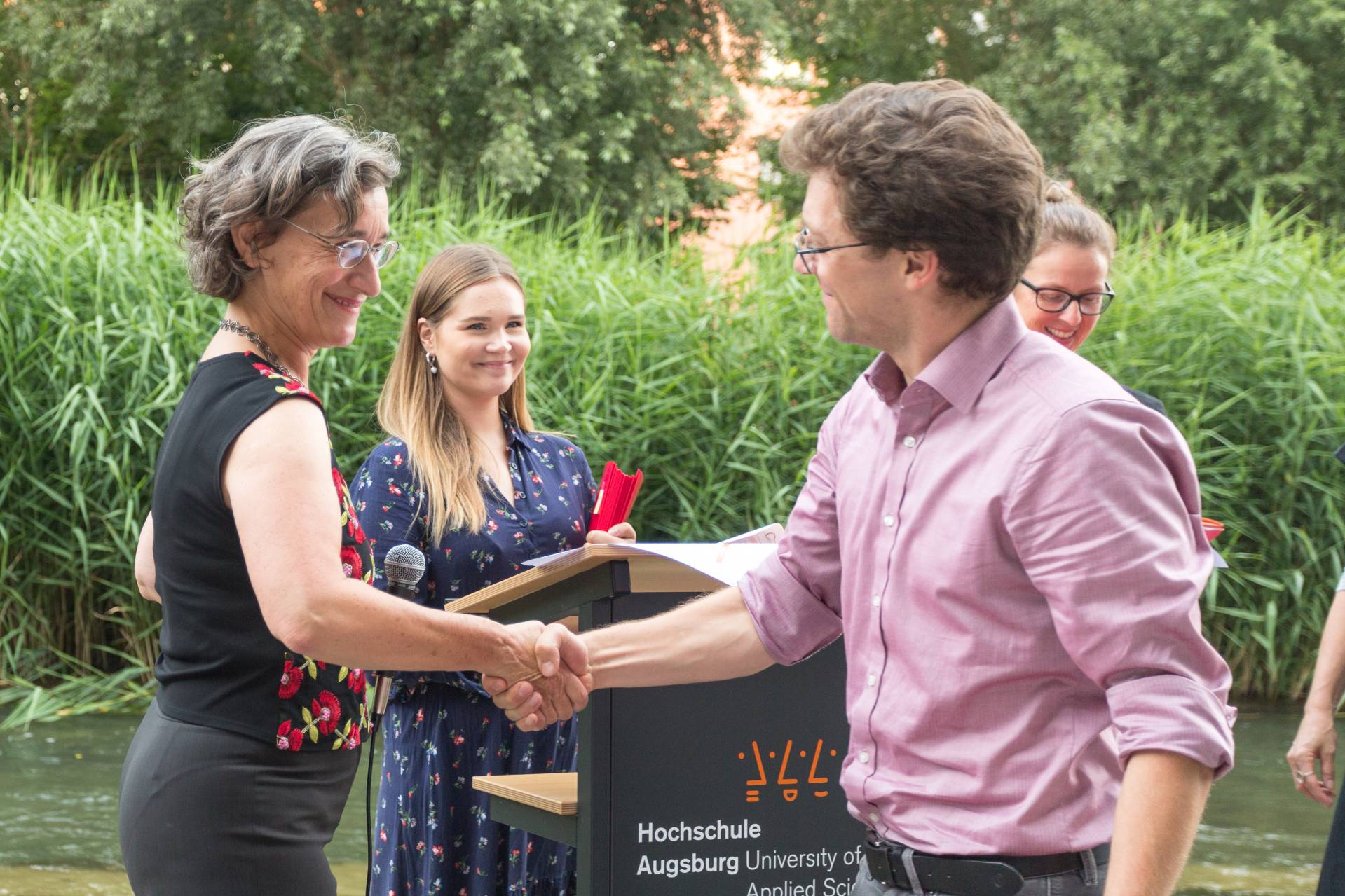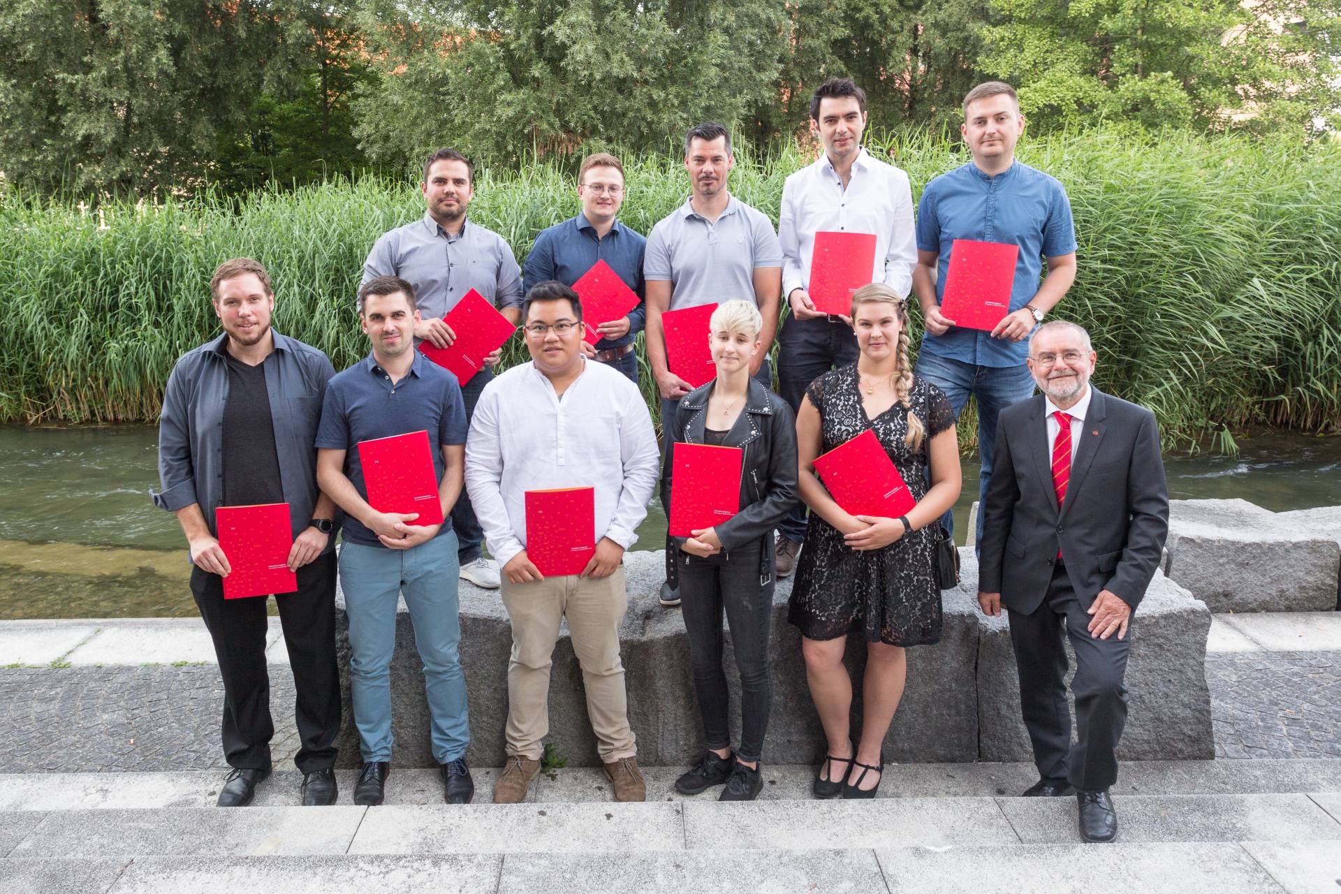Bei bestem Sommerwetter feierte das Institut für Bau und Immobilie am Freitag, 19. Juli 2019 wieder das beliebte IBI-Sommerfest. Absolventinnen und Absolventen kamen mit Familie und Freunden, um ihre Zeugnisse entgegen zu nehmen. Alumni und derzeit Studierende, Dozenten, Freunde und Förderer des IBI nutzten die Gelegenheit zum lockeren Austausch und zum Wiedersehen ehemaliger Studienkollegen und Dozenten. Die Gäste genossen den lauen Sommerabend auf der "Freilichtbühne" am Campus Brunnenlech und freuten sich mit den Absolventen über den erfolgreichen Studienabschluss.