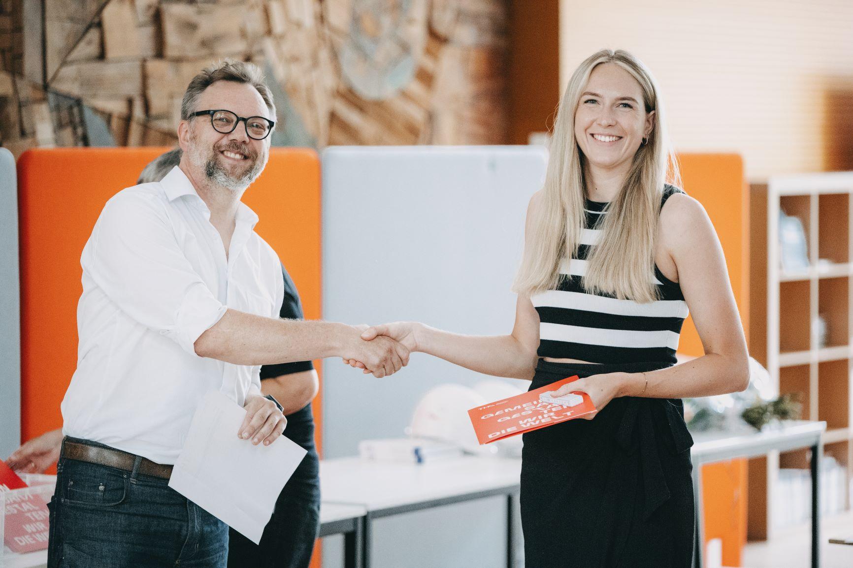 Prof. Dr. Timo Schmidt, Studiengangsleiter Fachingenieur:in Fassade, gratulierte den frisch gebackenen Fachingenieurinnen und Fachingenieuren sowie Fachplanerinnen und Fachplanern Fassade zu ihrem Abschluss und überreichte feierlich die Zeugnisse.