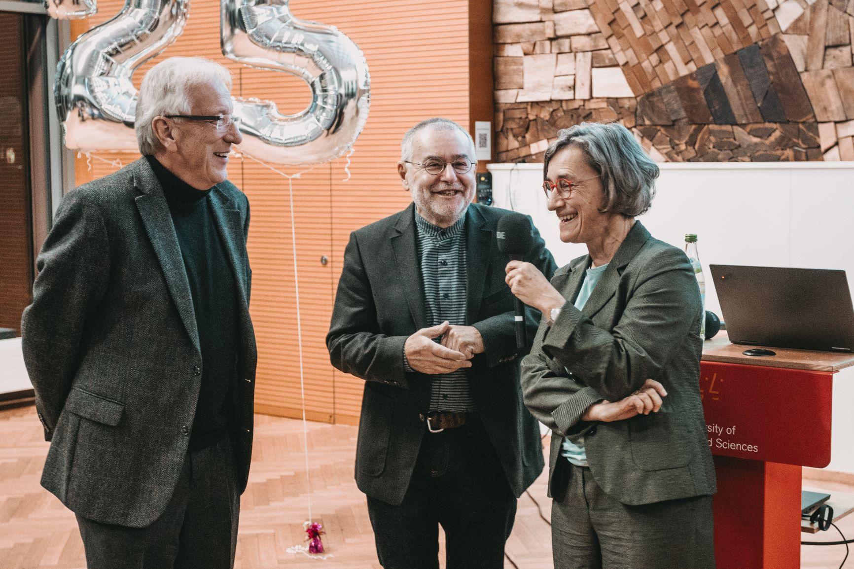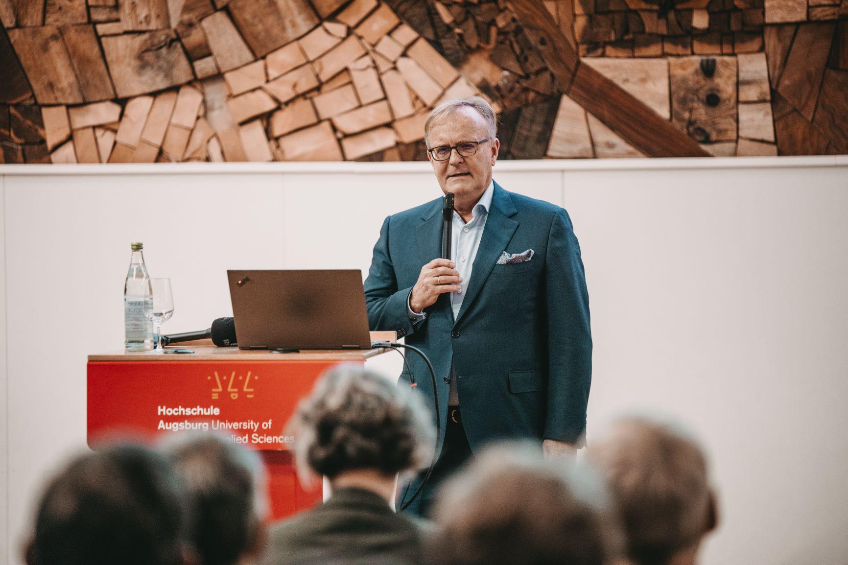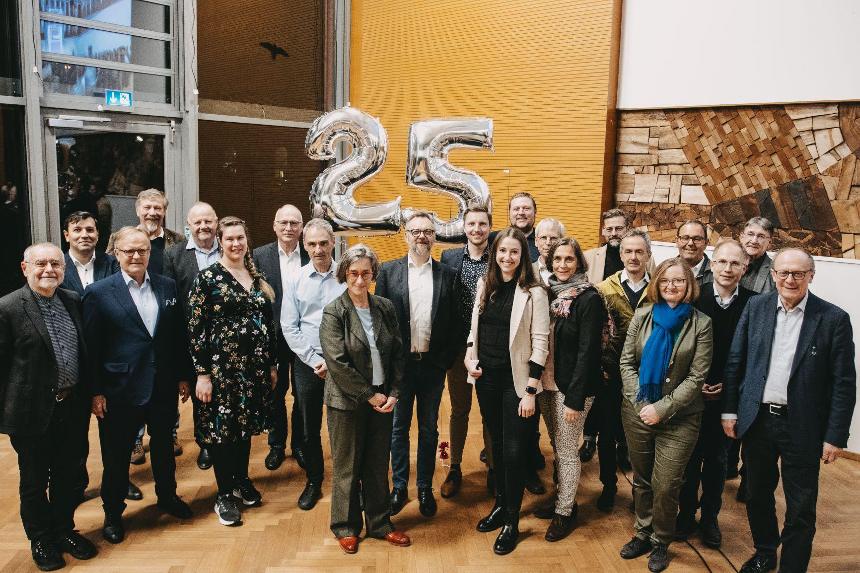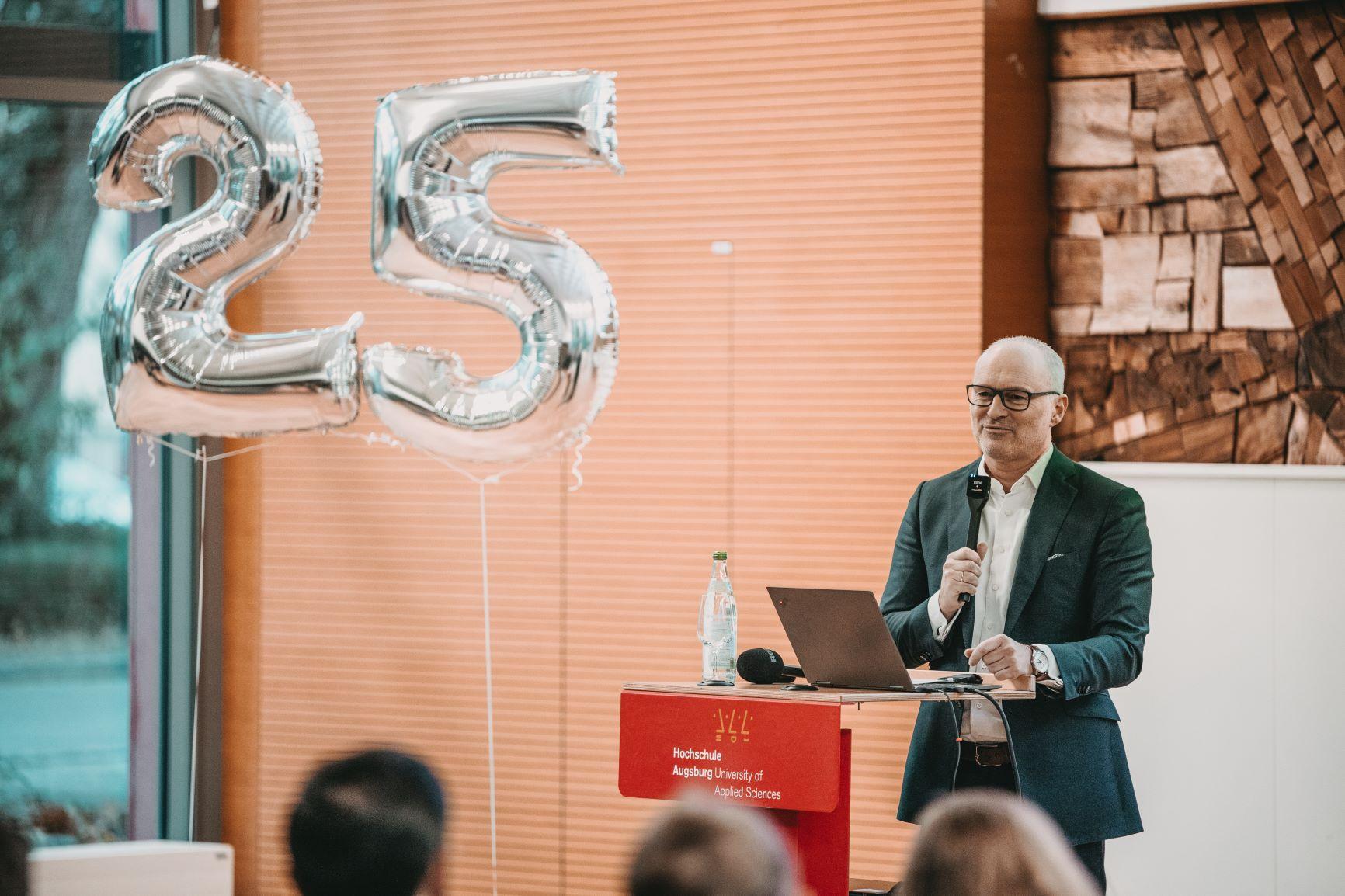 Prof. Dr. Dr. h.c. Gordon Thomas Rohrmair, Präsident der THA, Prof. Dr. Wolfgang Nowak, Dekan der Fakultät für Architektur und Bauwesen, Prof. Dr. Norbert Preuß, Modulverantwortlicher Projektmanagement sowie das IBI-Team um die Institutsleiter:innen Prof. Dr. Elisabeth Kroen, Prof. Dr. Jürgen Huber, Prof. Wolfgang Huß und Prof. Dr. Timo Schmidt feierten zusammen mit über 150 derzeit Studierenden, Alumni, Dozierenden und externen Gästen das Jubiläum und ließen die Entwicklung des Instituts für Bau und Immobilie (IBI) im Zeitraffer Revue passieren.