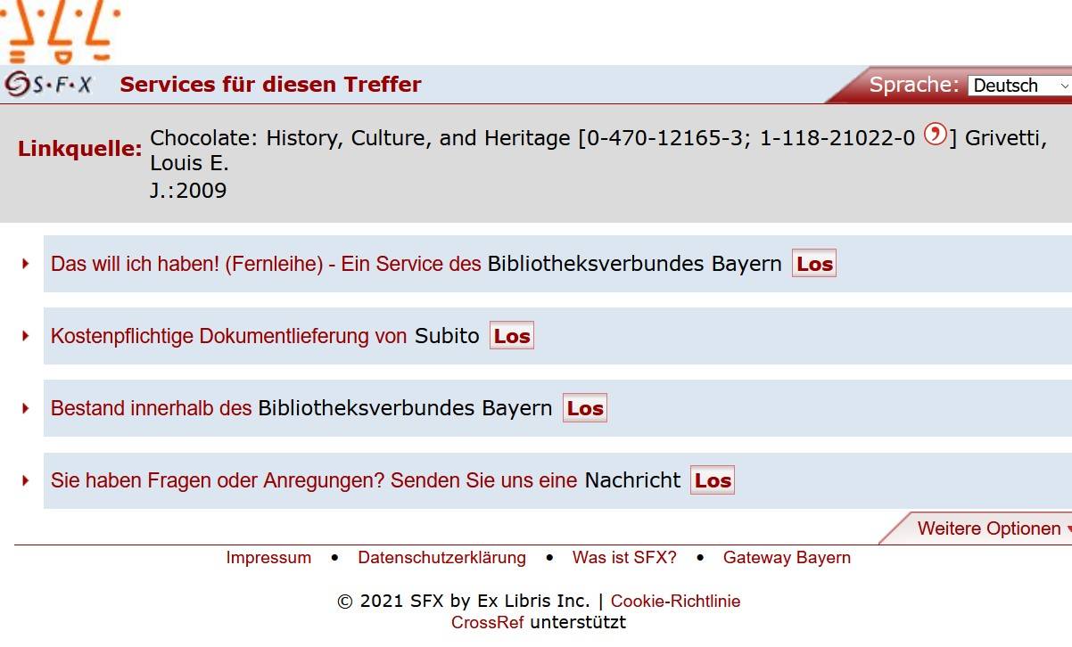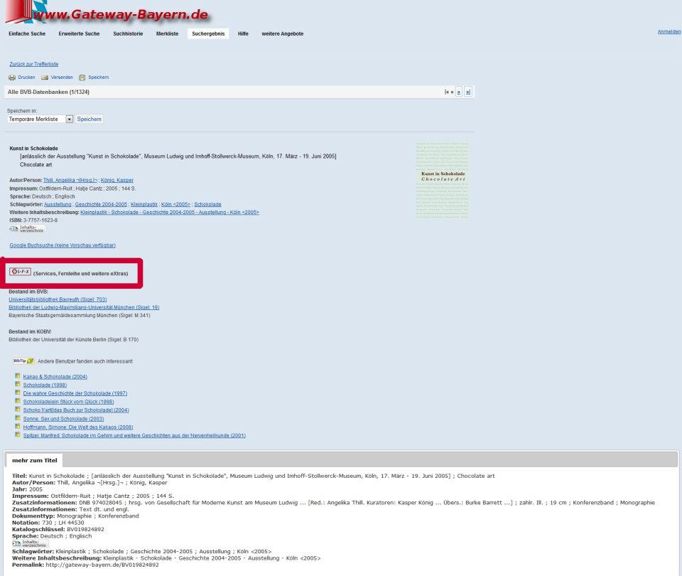 4. Klicken Sie auf den SFX-Button (Services, Fernleihe und weitere eXtras)
