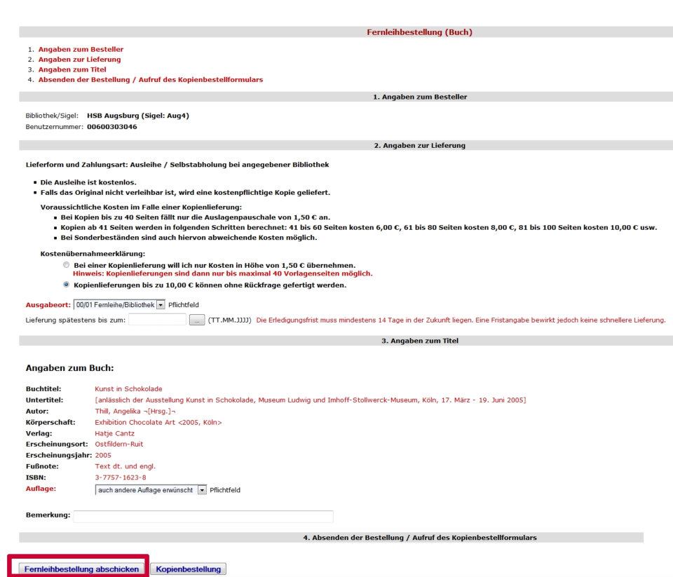 8. Sobald Sie die Fernleihbestellung abgeschickt haben, wird die Bibliothek, die das gewünschte Buch besitzt, benachrichtigt.