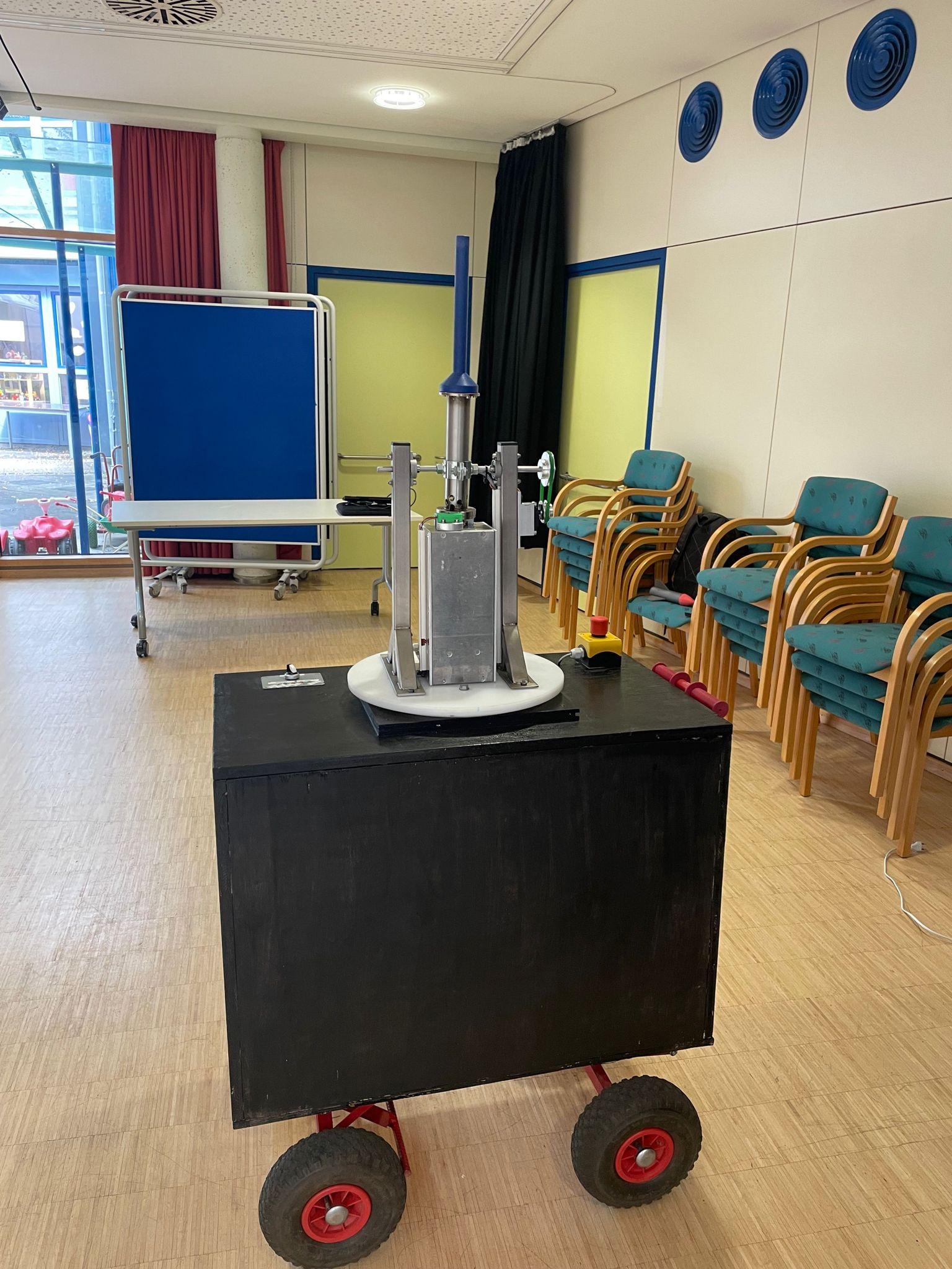 In Kooperation mit dem Fritz-Felsenstein-Haus soll es körperlich und geistig benachteiligten Schülern ermöglicht werden, mittels eines mechatronischen Systems, einen Stapel Dosen über eine größere Entfernung umzuwerfen.