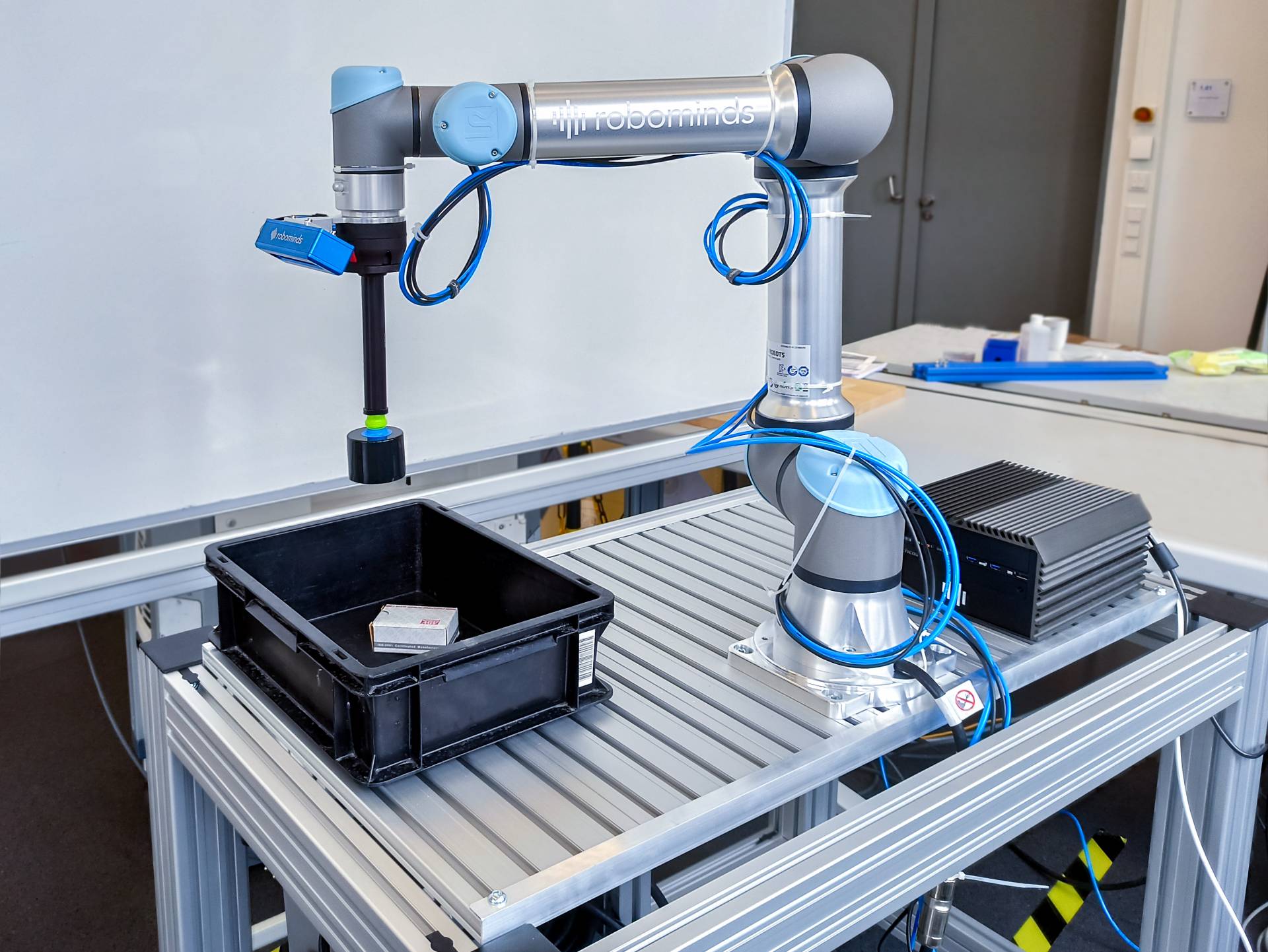 Robobrain.vision, ein Roboter mit KI-Fähigkeiten, erfasst über eine 3D-Kamera sein Umfeld und verfügt über einen KI-gestützten Algorithmus, mit dem er eigenständig logistische Aufgaben planen und durchführen kann. Professor Simon Dietrich wird gemeinsam mit der Firma robominds GmbH das neuartige System, das an einem Leichtbauroboter an der Hochschule Augsburg aufgebaut wurde, weiterentwickeln. Der Roboter wird aber nicht nur zur Untersuchung von wissenschaftlichen Fragestellungen verwendet, sondern auch in einem Praktikum zum Einsatz kommen.