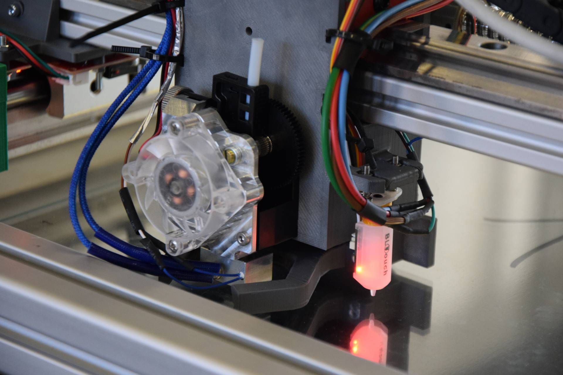 Bei einem vorherigen Projekt wurde von Studierenden ein großformatiger 3D-Drucker selbst entwickelt und gebaut. Im Rahmen von Systems Engineering 1 im WiSe 2021/22 wurden der Drucker nicht nur Instand gesetzt und die X- und Y-Achsen neu entwickelt, sondern auch eine Druckbettnivellierung nachgerüstet.