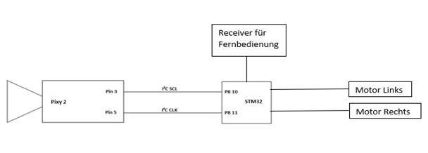 Dabei wurde das Pixy-Original verwendet. Die Pixy-Kamera ist in der Lage, verschiedene Objekte anhand ihrer Farbe mit Eigenschaften wie Größe und Position zu erkennen.