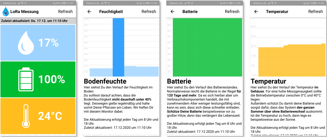 Um in der warmen Sommersaison das Vertrocknen von Grabpflanzen zu vermeiden, wird die Feuchtigkeit der Pflanzenerde über das "LoRa WAN" (Long Range Wide Area Network) versendet und den Nutzer:innen über eine Android-App angezeigt.