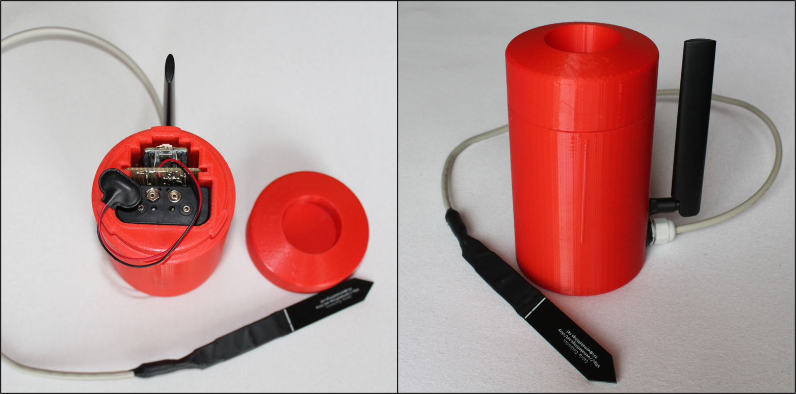 Um das Sensorsystem vor Witterung zu schützen, ist es in einem Gehäuse in Form eines Grablichtes untergebracht. Lediglich die Antenne und der Feuchtigkeitssensor sind außerhalb des Gehäuses und durch zwei abgedichtete Öffnungen mit dem Mikrocontroller verbunden.