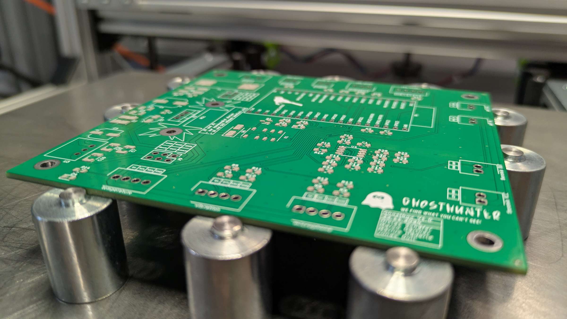 - Platine und Schablone sollen in das Gerät eingespannt werden.