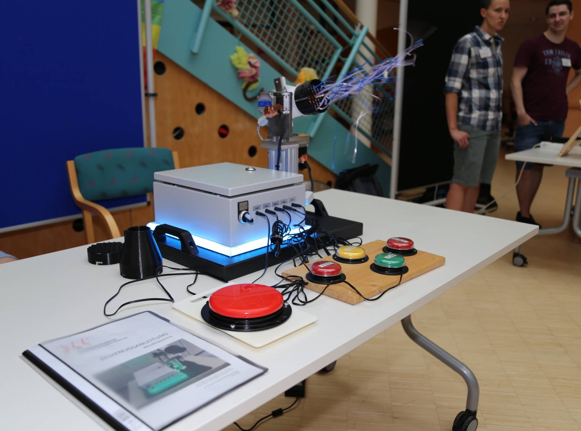 Nach den herzlichen Begrüßungsworten von Frau Simnacher, der Bereichsleiterin für Kinder und Jugendliche, und Professor Zeuke, dem Leiter des Großprojektes an der THA, ging es los! Die Anwesenden konnten hautnah die faszinierenden Geräte der Studierenden testen.