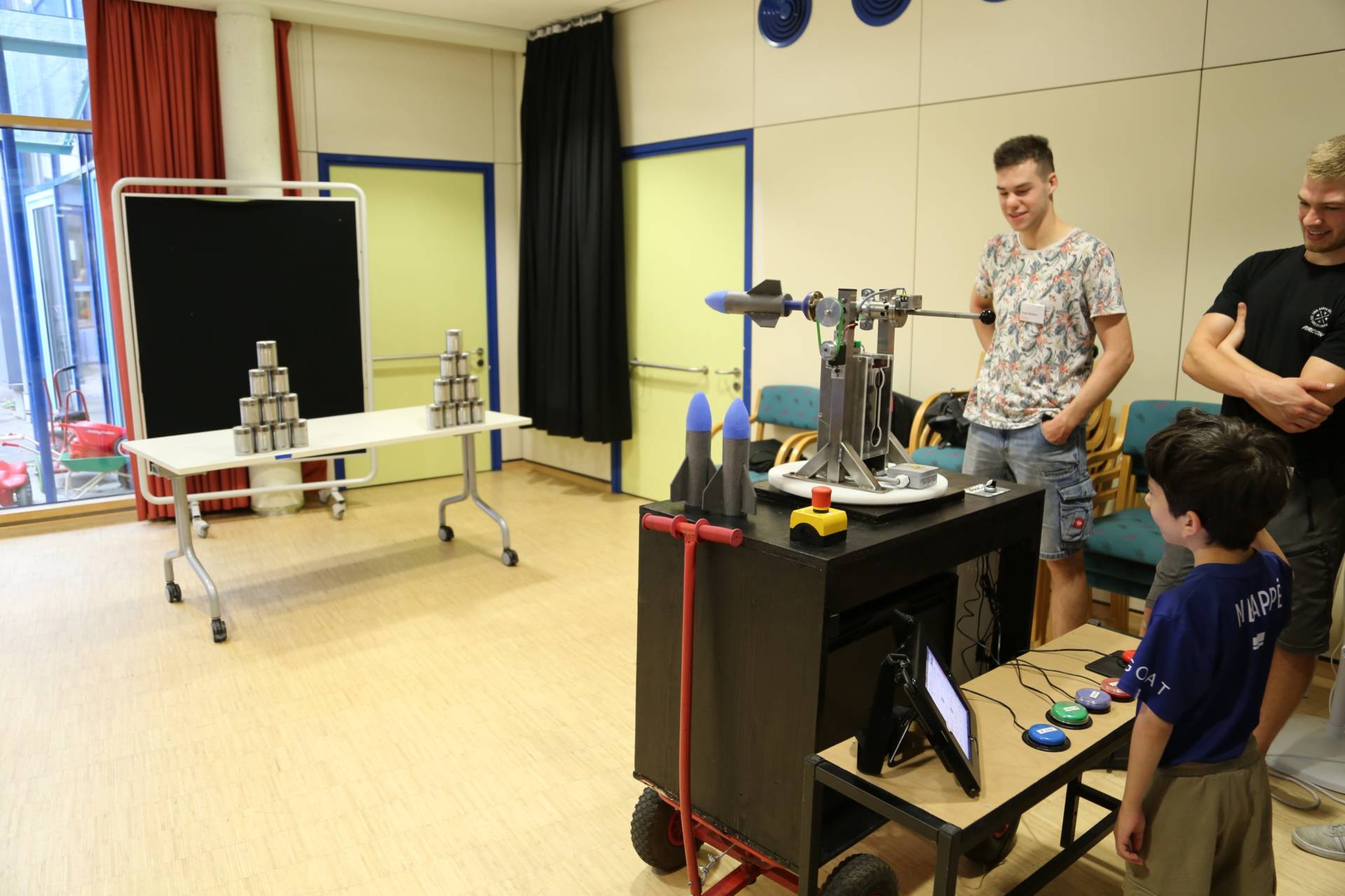 Das Motto des Tages war "Mechatronik hilft Menschen mit Behinderung". Unsere Studierenden haben mit Engagement und Einfallsreichtum neun spannende Projekte umgesetzt. Von einer interaktiven Rakete für das Dosenwerfen bis hin zu einem cleveren Rollbrett-Rollstuhl zum Selbstbedienen war alles dabei!