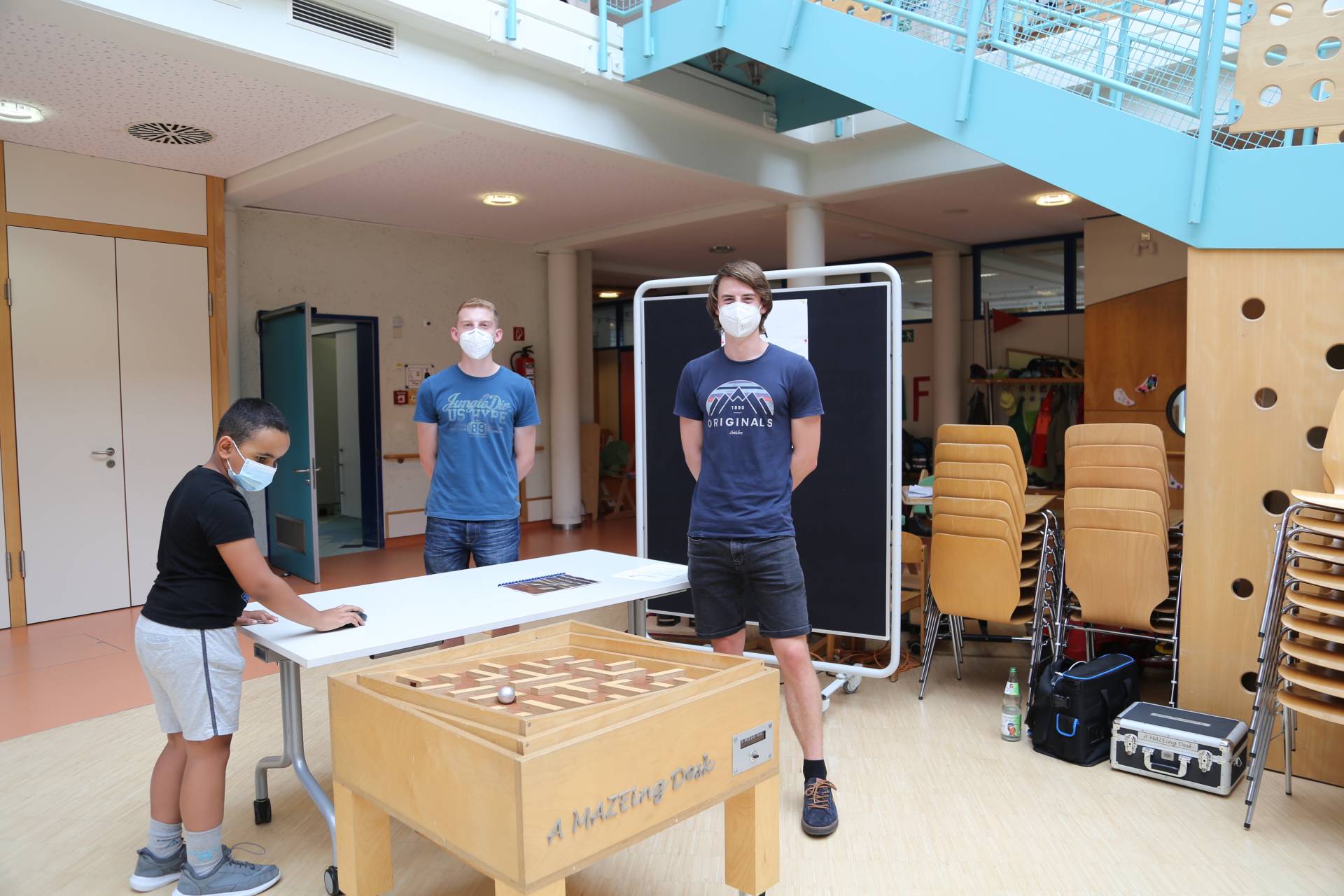 Beim A MAZEing Desk, einem Kugellabyrinth das per Computermaus gesteuert werden kann, bewiesen die Schülerinnen und Schüler am Fritz-Felsenstein-Haus ihre Geduld und Geschicklichkeit.
