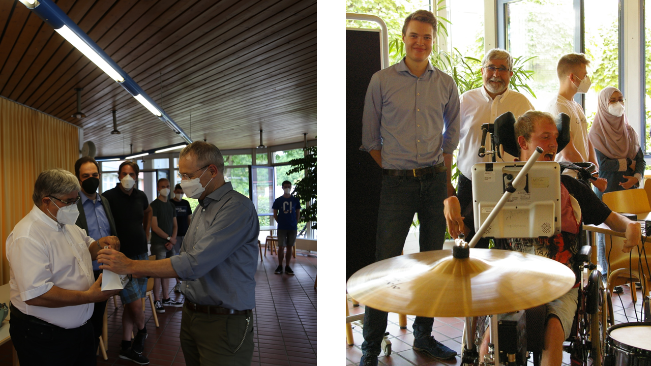 Ein Geschenk der ganz besonderen Art war schließlich das HiHat, ein Schlagzeug, das per Knopfdruck zum Beispiel über die Wange gespielt werden kann. Dank großzügiger Spenden einiger Sponsoren konnte dieses Projekt realisiert und übergeben werden.