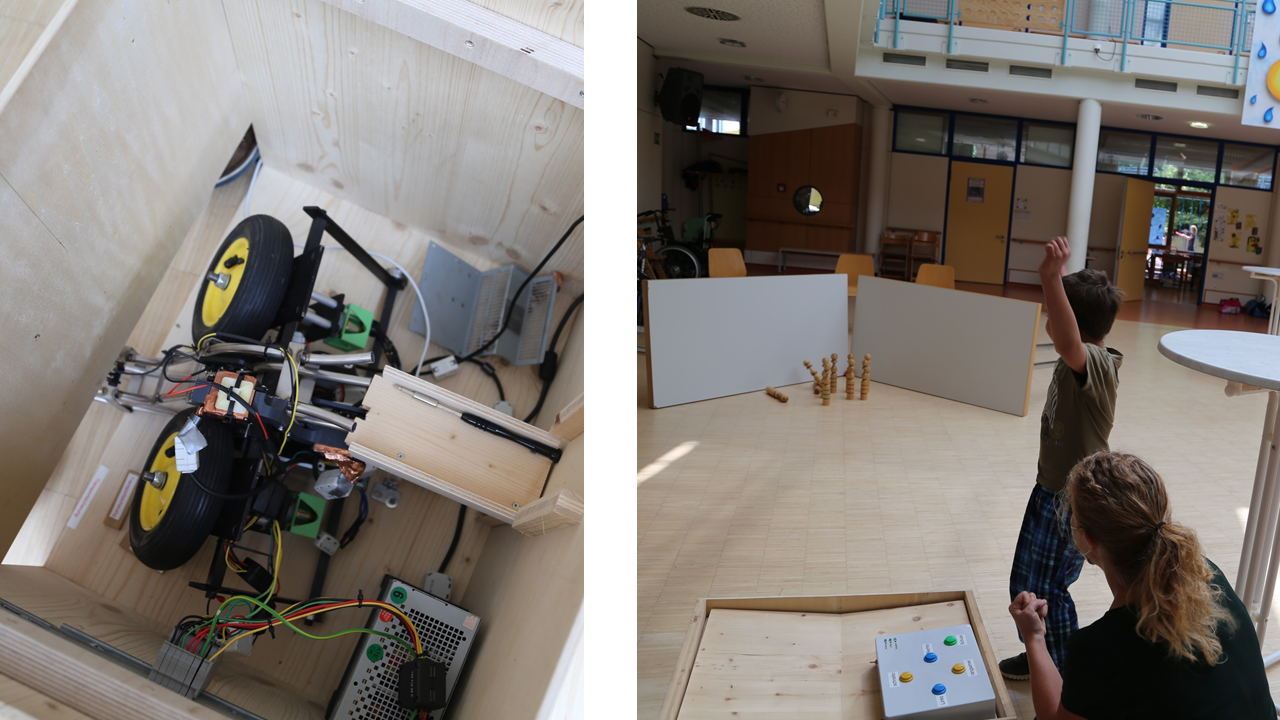 Unter Leitung der Professoren Martin Bayer, Benjamin Danzer und Wolfgang Meyer entwickelten Studierende der Fakultät für Elektrotechnik im Sommersemester 2021 verschiedene Geräte und Spiele, die am Fritz-Felsenstein-Haus für Menschen mit Körper- oder Mehrfachbehinderungen zum Einsatz kommen. In kleinerer Runde als üblich und unter Einhaltung der Corona-Schutzmaßnahmen fand in diesem Jahr die Übergabe der Projekte vor Ort statt. Da Professor Martin Bayer zum Ende des Sommersemesters in seinen wohlverdienten Ruhestand geht, bedankte sich Gregor Beck, Vorstandsvorsitzender des Fritz-Felsenstein-Hauses, bei Professor Bayer für sein langjähriges Engagement. Er betonte, dass sich das Fritz-Felsenstein-Haus auch künftig auf die Kooperation mit der Fakultät für Elektrotechnik freut, die im Rahmen des Großprojekts von den Professorenkolleg:innen weitergeführt werden soll. Nach der kurzen Rede gab es dann für Schüler:innen und Hausbewohner:innen die Möglichkeit die von den Studierenden neu- oder weiterentwickelten Geräte direkt zu testen.