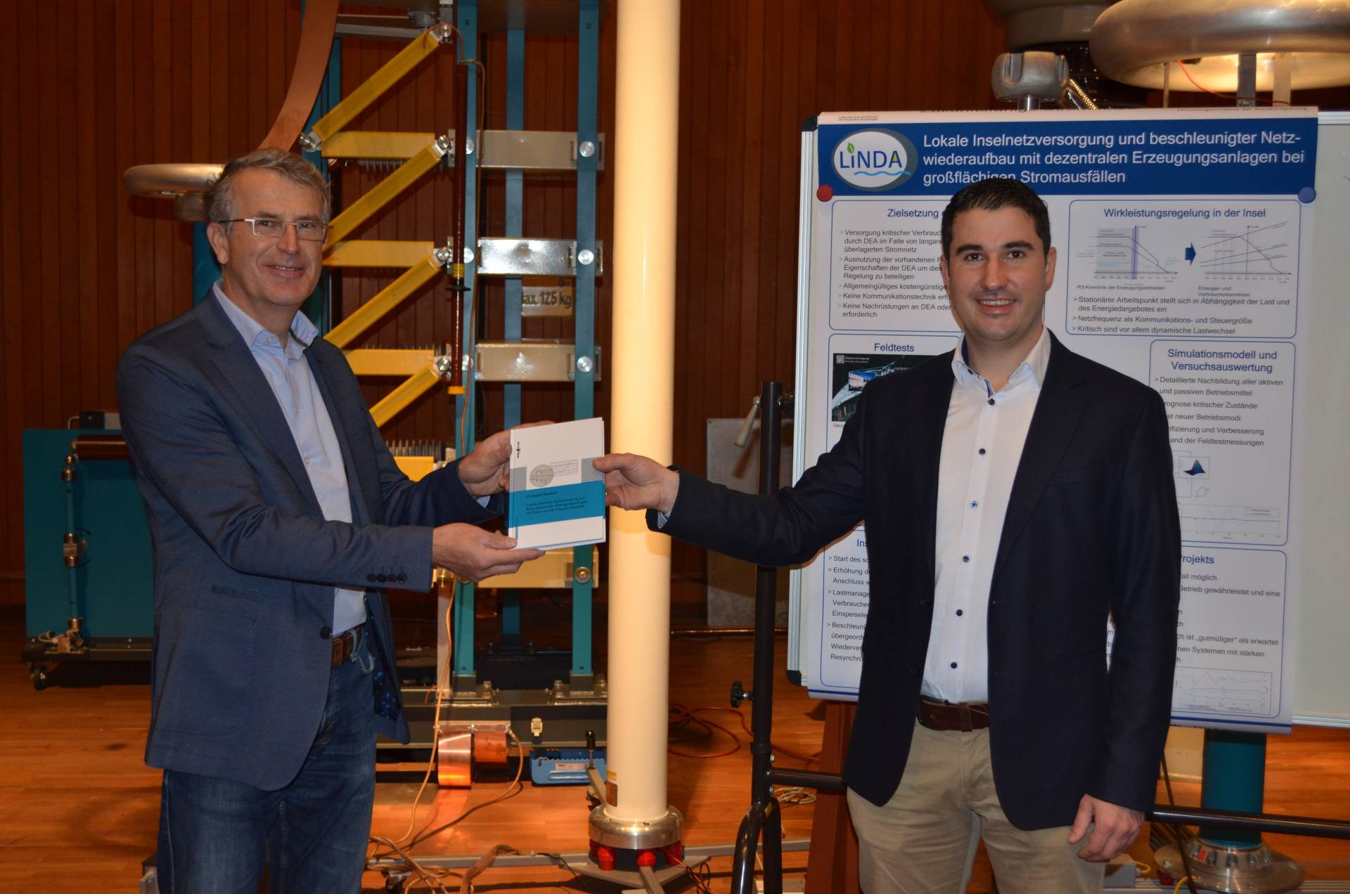 Im Forschungsprojekt LINDA (Lokale Inselnetzversorgung und beschleunigter Netzwiederaufbau mit dezentralen Erzeugungsanlagen bei großflächigen Stromausfällen) haben die Hochschule Augsburg und TU München gemeinsam mit der LEW Verteilnetz GmbH (LVN), den Bayerischen Elektrizitätswerken GmbH, marquis Automatiserungstechnik GmbH, MTU Onsite Energy, PSI AG und Stellba Hydro GmbH & Co. KG ein wegweisendes Notstromkonzept entwickelt, welches erneuerbare Energien zum Aufbau eines stabilen Inselnetzes nutzt. In Feldtests, die in ihrem Umfang in Bayern und Deutschland bisher einzigartig sind, wurde das Konzept erfolgreich umgesetzt. Es lässt sich besonders gut übertragen und kann so einen wichtigen Beitrag zur Krisenvorsorge leisten.