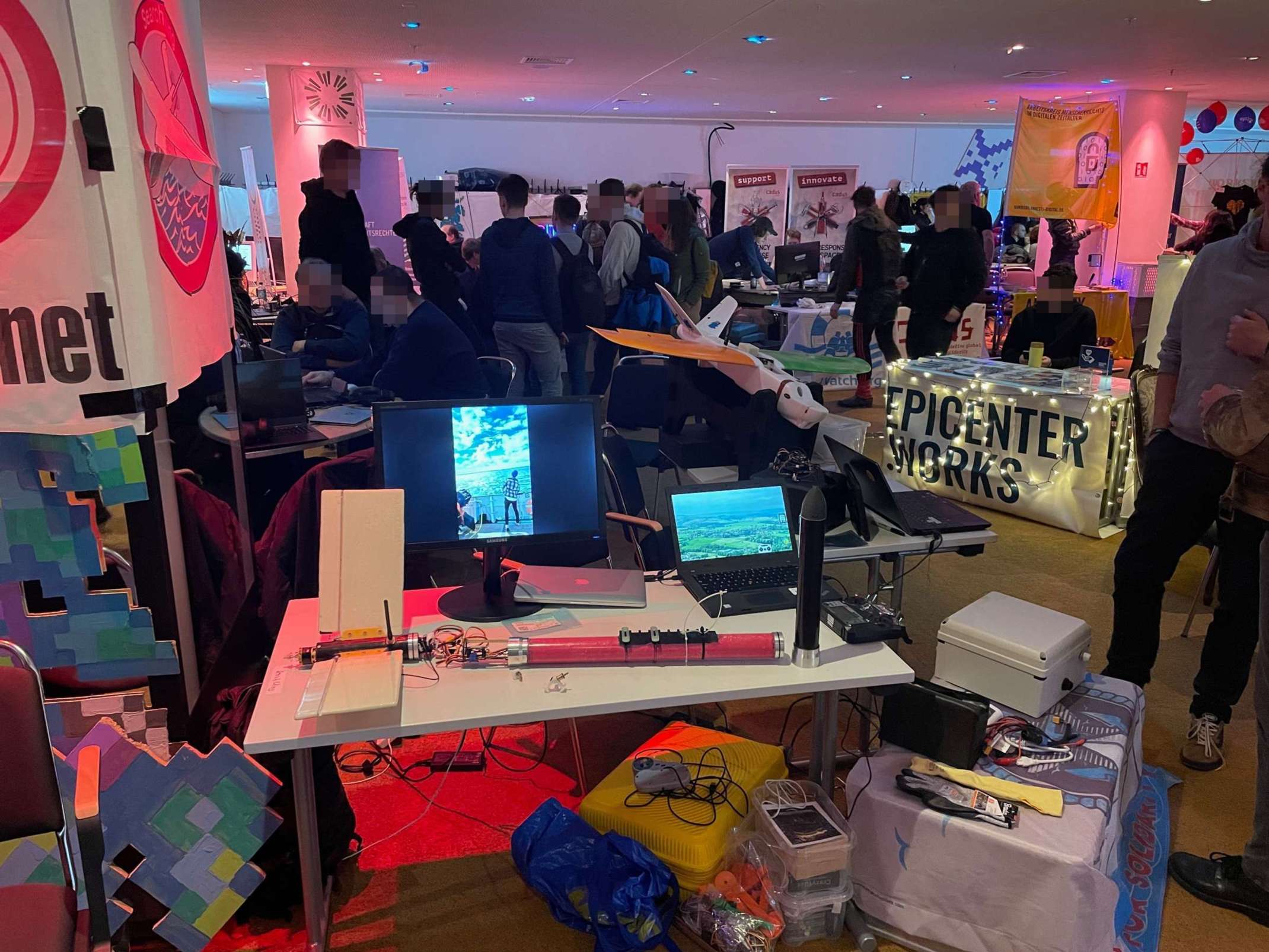 Der Kongress des Chaos Computer Clubs ist eine besondere Veranstaltung mit ca. 10.000 Besuchern, in der technisch anspruchsvolle Vorträge, gesellschaftliche Themen oder einfach spannende technische Themen vorgestellt und diskutiert werden können. Das Assembly von SearchWing, auf dem 37C3 Kongress des Chaos Computer Clubs, weckte großes Interesse bei den Besuchern. Besonders viele Nachfragen gab es zu der maschinellen Bildverarbeitung, mit der die Fotos der Drohne auf Menschen in Seenot durchsucht werden. Das Team von SearchWing führte auf dem Kongress viele interessante Gespräche und freute sich auch über andere anregende Einblicke. Zwei Vortragende erläuterten beispielsweise, wie sie ein U-Boot gebaut haben. Das U-Boot dazu hatten sie gleich mitgebracht.