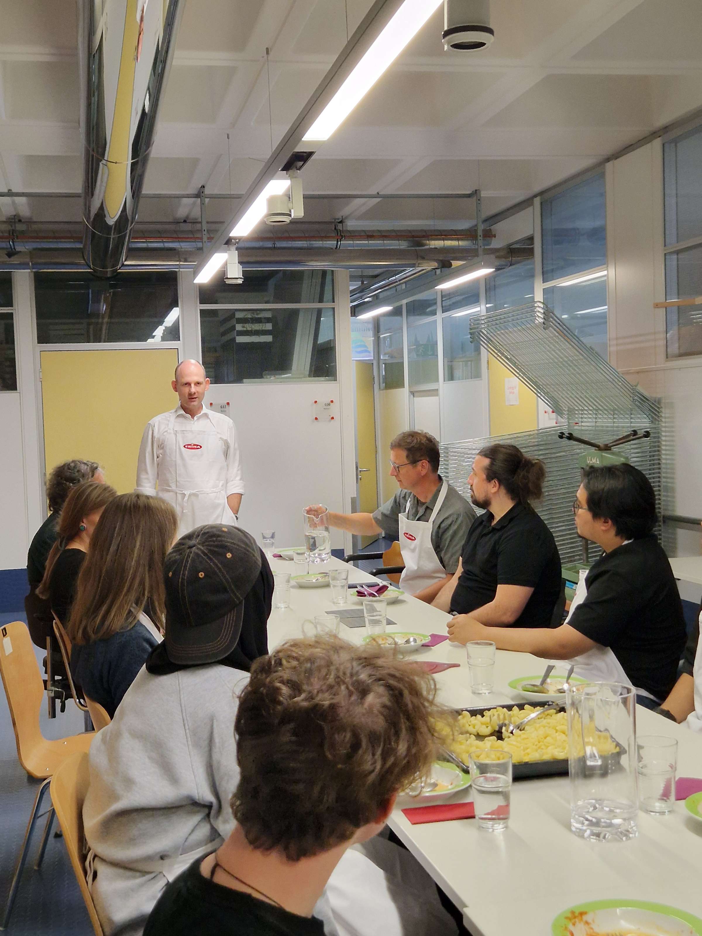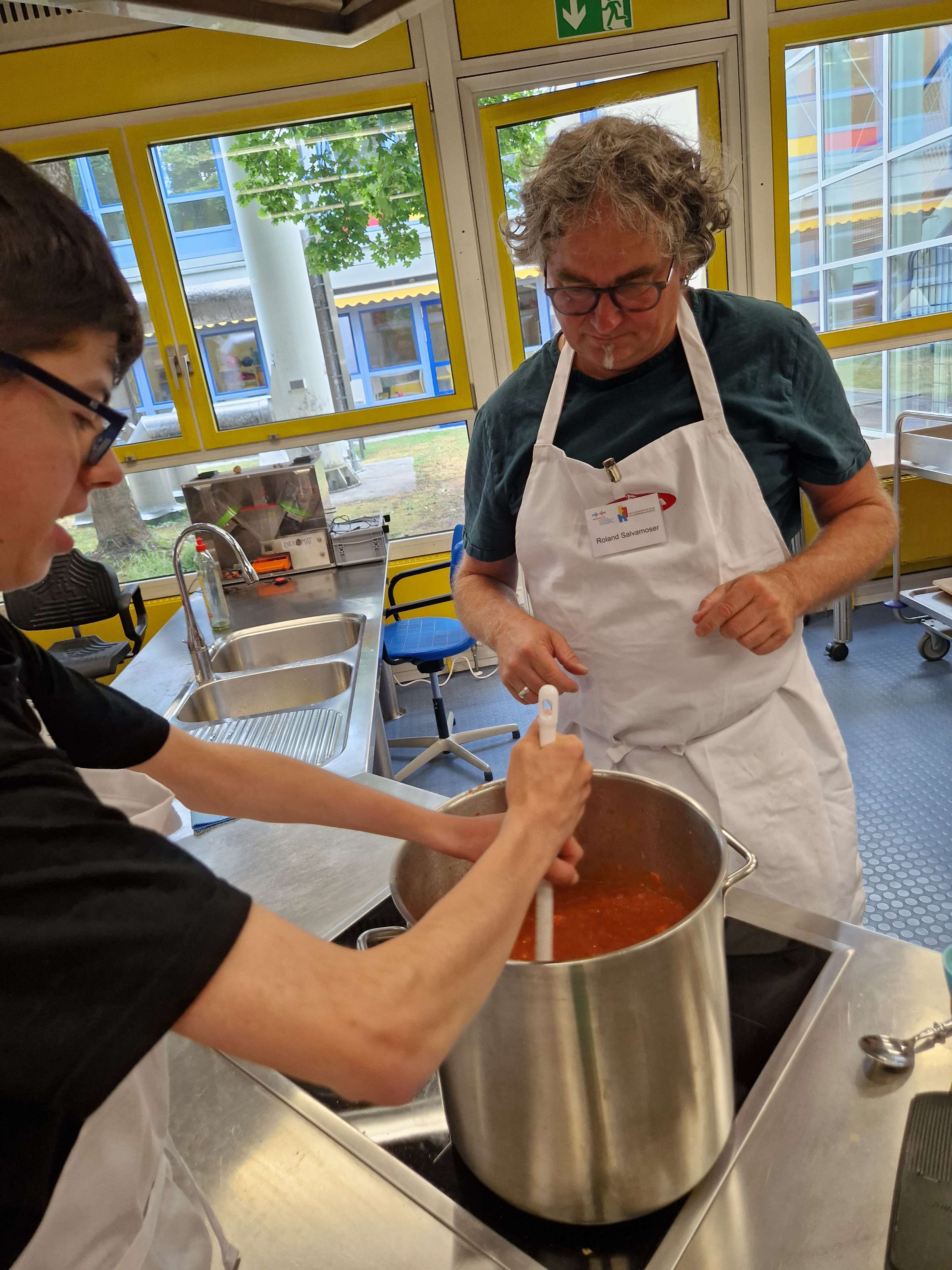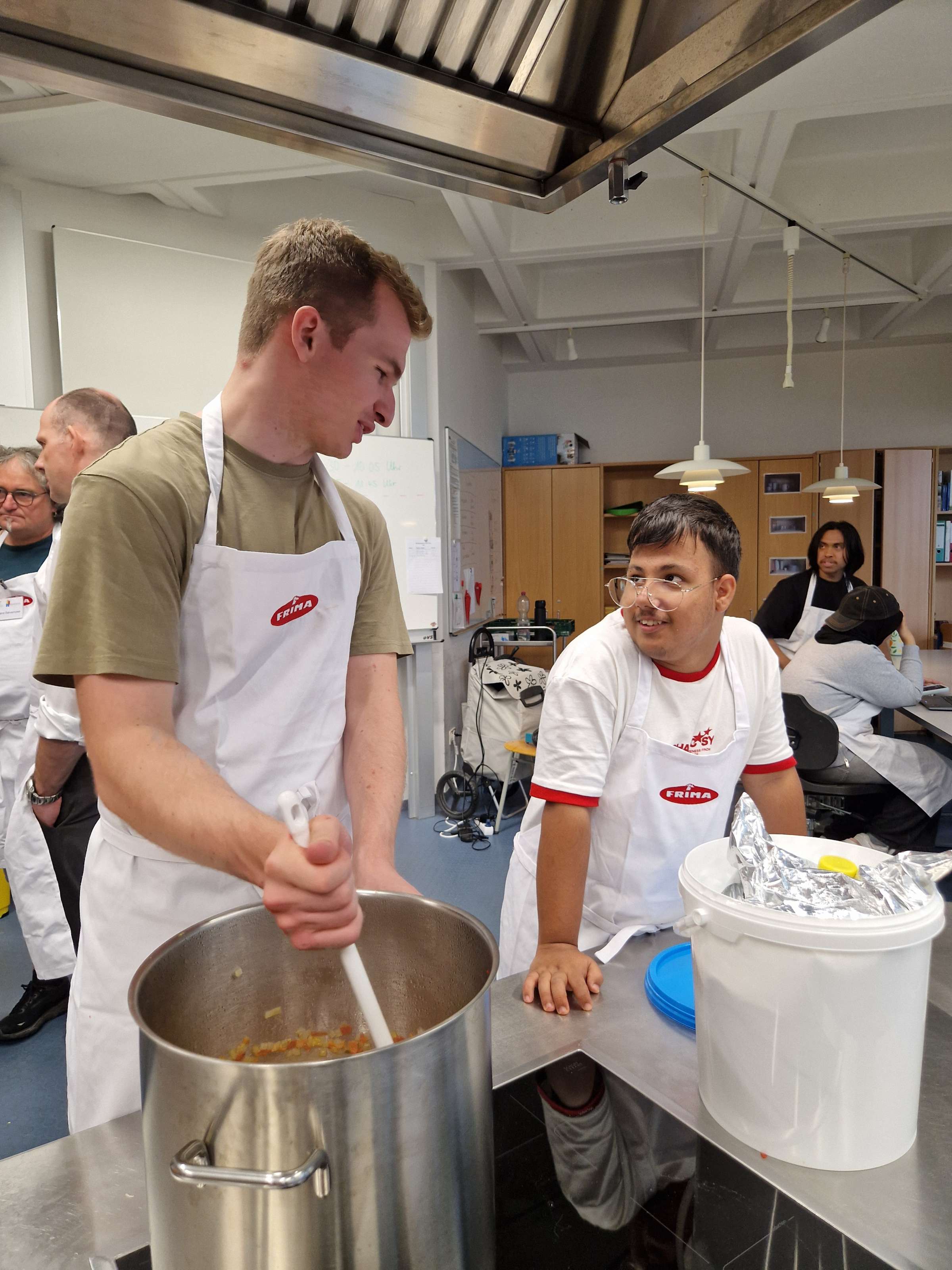 Es wuselt in den Schulküchen des Fritz-Felsenstein-Hauses (FFH), einer Einrichtung für Kinder und Jugendliche mit Körper- und Mehrfachbehinderung. Studierende der Technischen Hochschule Augsburg (THA) und Schülerinnen und Schüler des FFH arbeiten Seite an Seite. Das Ziel: Nudeln mit Tomatensoße für das gemeinsame Mittagessen. Die Stimmung ist lebendig und – wie in einer echten Großküche – manchmal auch angespannt. Alle möchten etwas beitragen, alle wollen mitmachen.