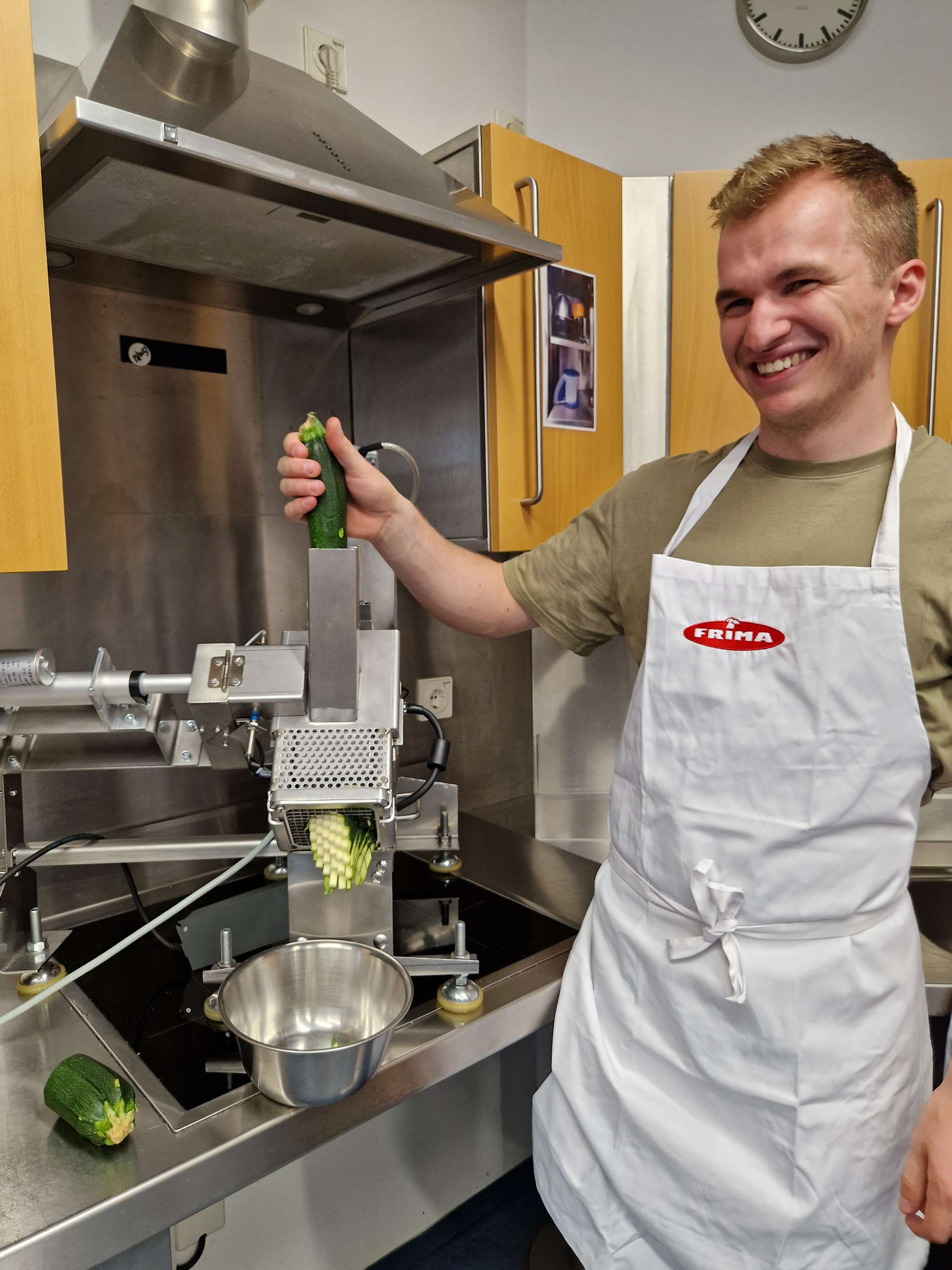 Damit solche Entwicklungen möglich werden, braucht es Unterstützung durch Partnerunternehmen. Würth Elektronik sponserte unter anderem den Zylinder, der genug Druck auf das Gemüse bringt. Die Gehäuse fertigten die Auszubildenden der RATIONAL AG in der Lehrwerkstatt. „Wir unterstützen das Projekt aus voller Überzeugung. Nicht nur, weil es Menschen mit Einschränkungen direkt zugutekommt, sondern auch, weil unsere Auszubildenden viel dabei lernen. Fachlich und persönlich“, sagt Daniel Goller, Ausbildungsleiter bei der RATIONAL AG.