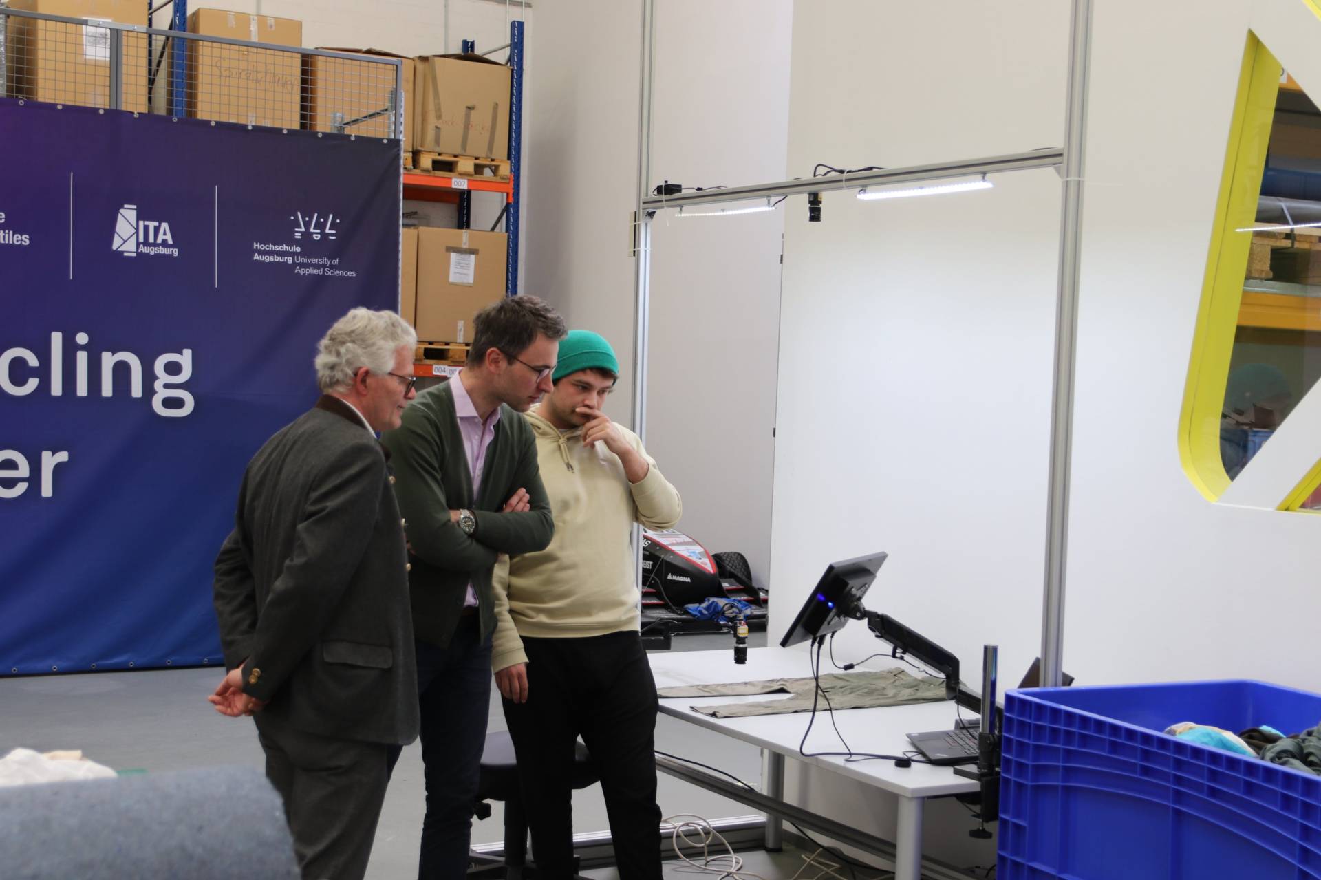 Das Recycling von Textilien ist ein wichtiger Schritt in Richtung Kreislaufwirtschaft. Das Projekt detex arbeitet daran, diesen Prozess zu optimieren. Dazu nutzen sie zwei hochauflösende Kameras, die wichtige Merkmale der Kleidungsstücke erfassen und kategorisieren, um die Grundlage für die weiteren Arbeitsschritte im Recycling zu schaffen.
