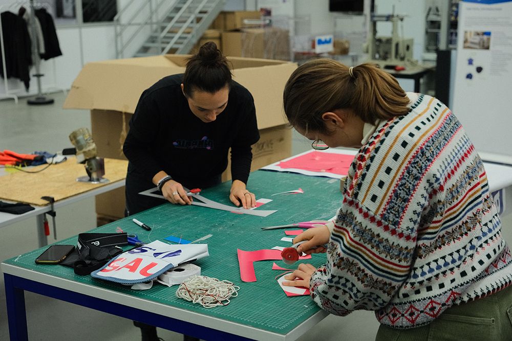 Im AWP-Fach „Mode neu denken: Design4Recycling und Nachhaltigkeit“ setzten sich Studierende praktisch mit dem Konzept der textilen Kreislaufwirtschaft und Aspekten des Design4Recycling auseinander. In Gruppenprojekten bearbeiteten sie verschiedene Themen wie beispielweise textiles Upcycling oder auch die Entwicklung von Tauschplattformen.